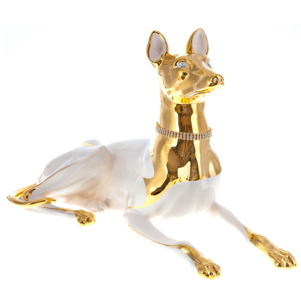 Greyhound statuette, color: black with platinumGreyhound statuette, color: black with platinumThe Italian company Ahura, founded in 1973, is known all over the world for its elegant decorative items made of porcelain and ceramics. The founders of the brand Enzio and Flavia Zanardello started with a small workshop, which eventually turned into a factory, the distinctive feature of which is the use of manual labor at all stages of the manufacture of decorative products.