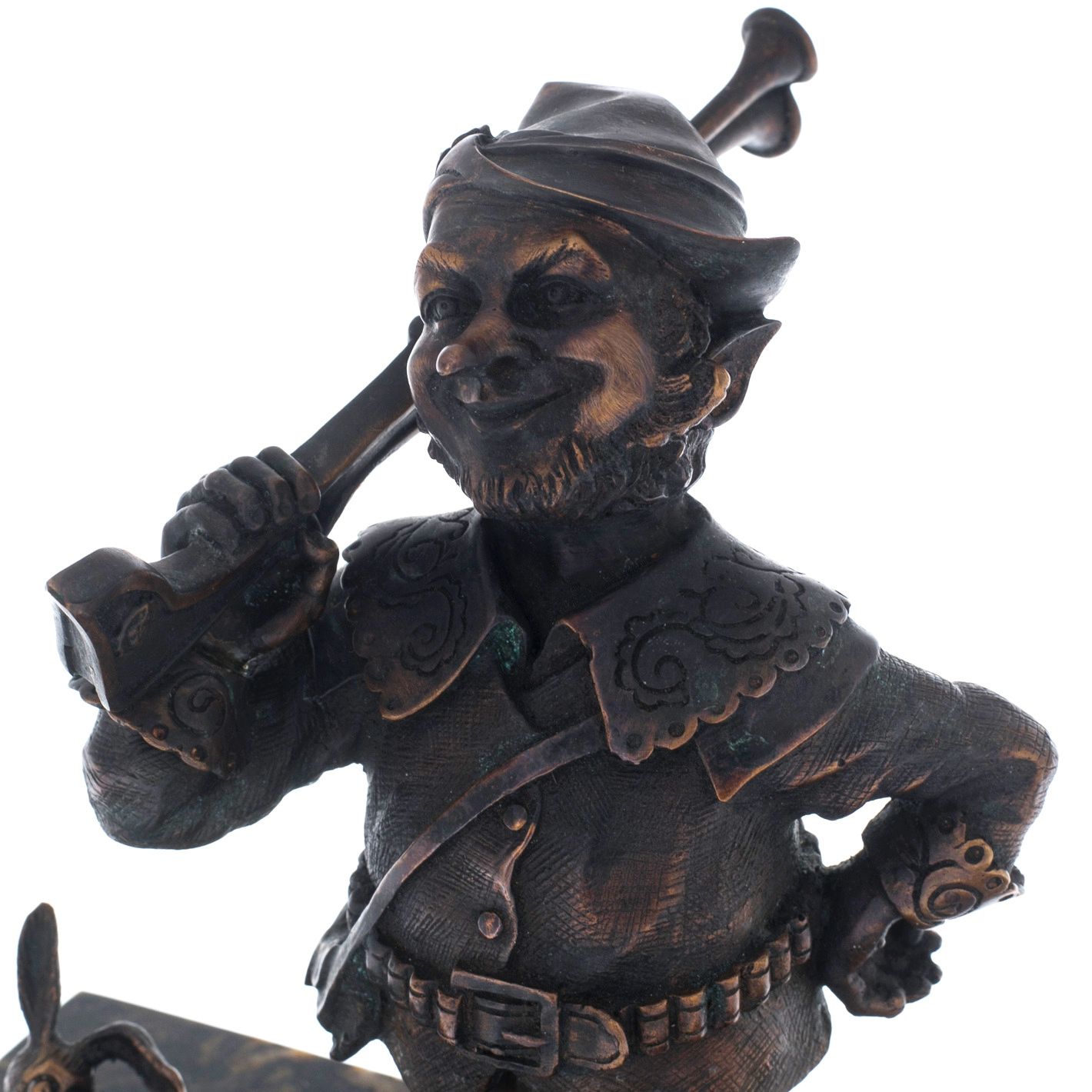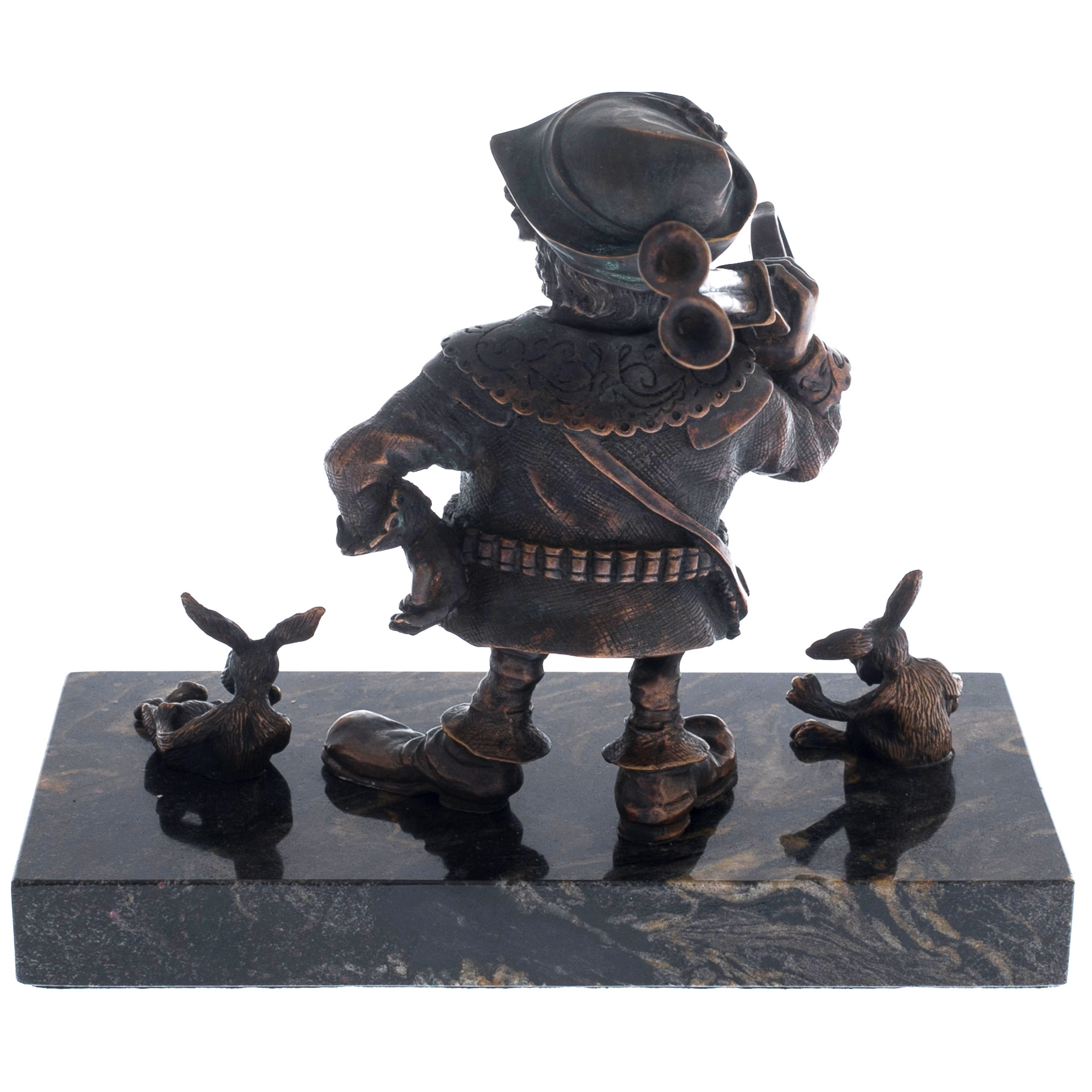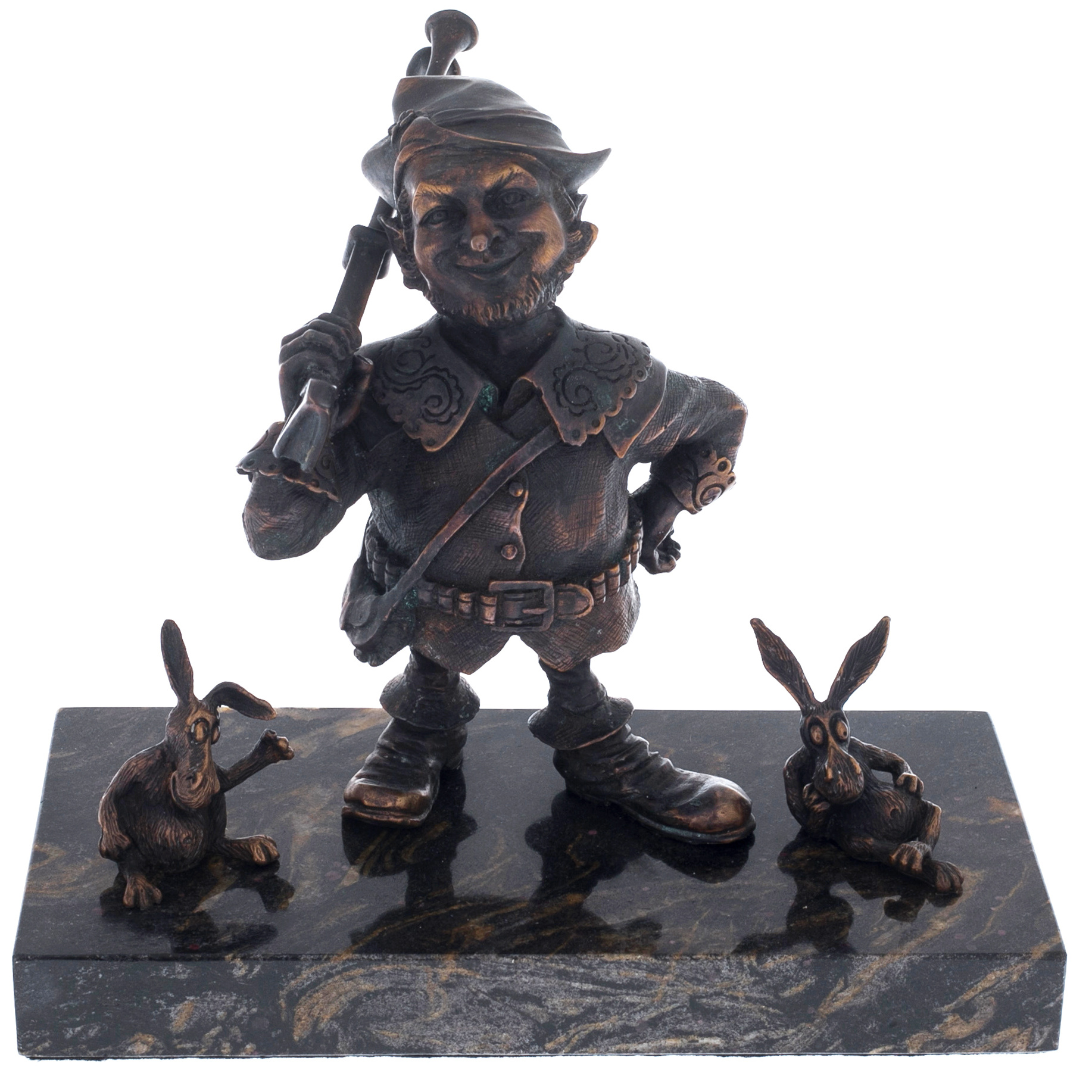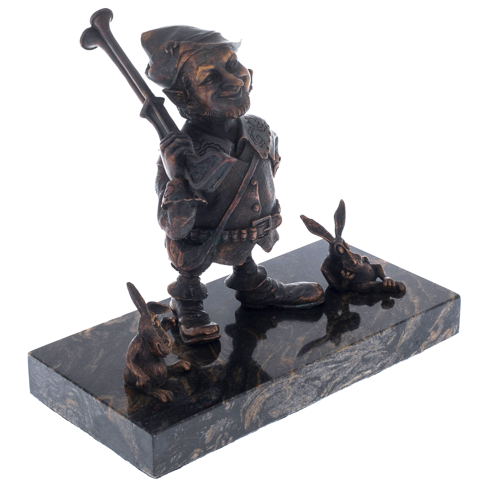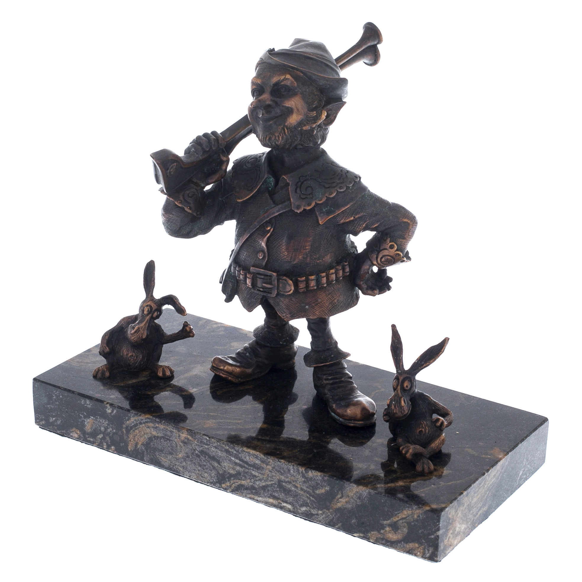 The author's bronze sculpture "The Gnome Hunter" on a marble stand