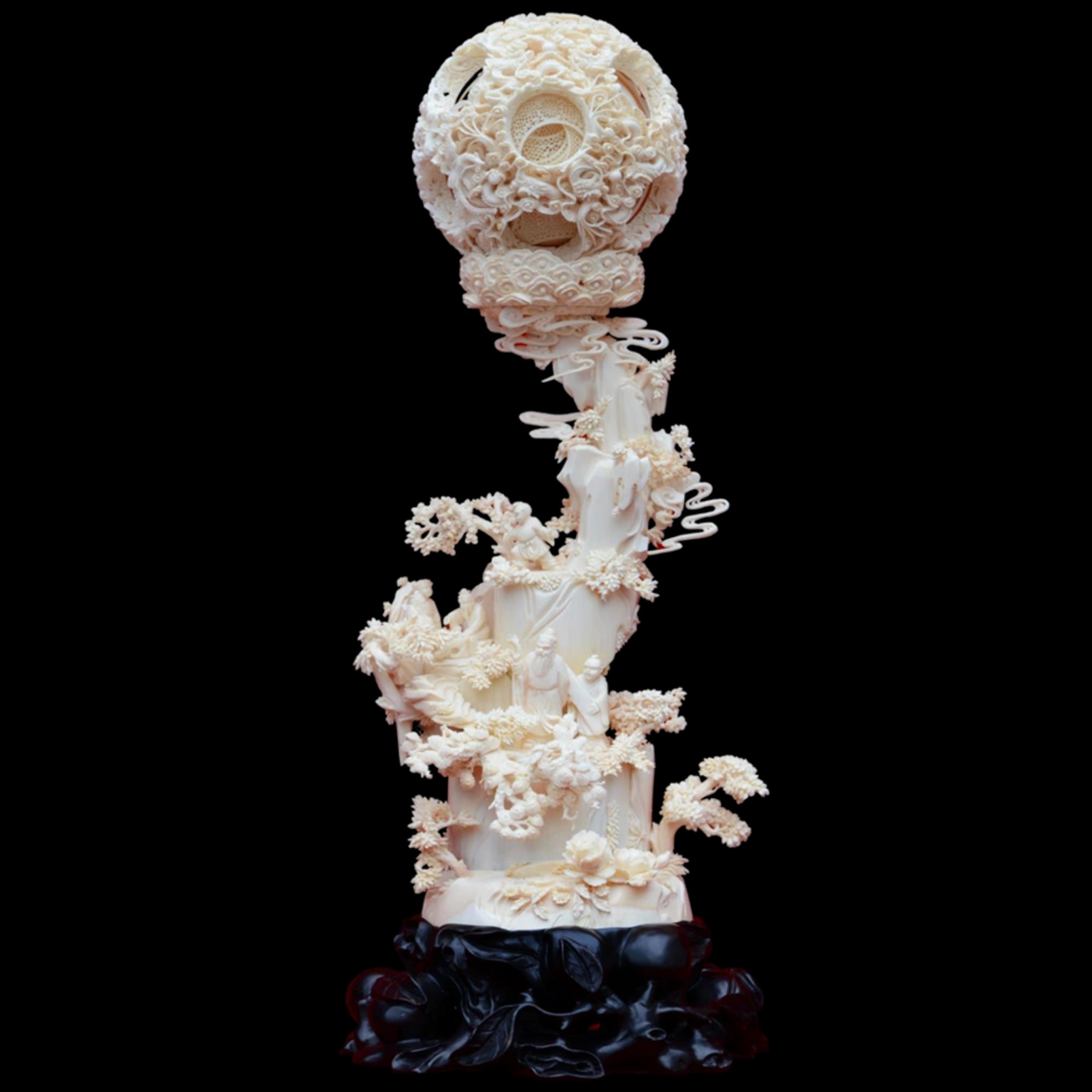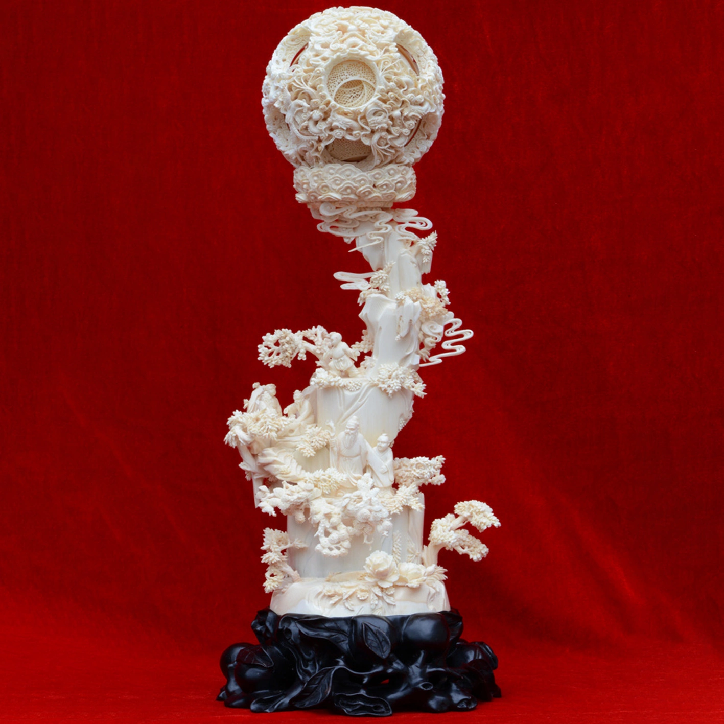 Кантонский шар из слоновой кости, известный также как «призрачный шар», — один из наиболее характерных видов гуанчжоуской резьбы, сформировавшийся ещё в эпоху династии Мин. Его уникальность заключается в том, что цельный фрагмент кости выдалбливается в многослойную сферу с переплетающимися ажурными оболочками. Каждый слой тонко проработан собственным сквозным орнаментом и может свободно вращаться внутри последующего, создавая впечатление лёгкости и почти невесомой прозрачности.