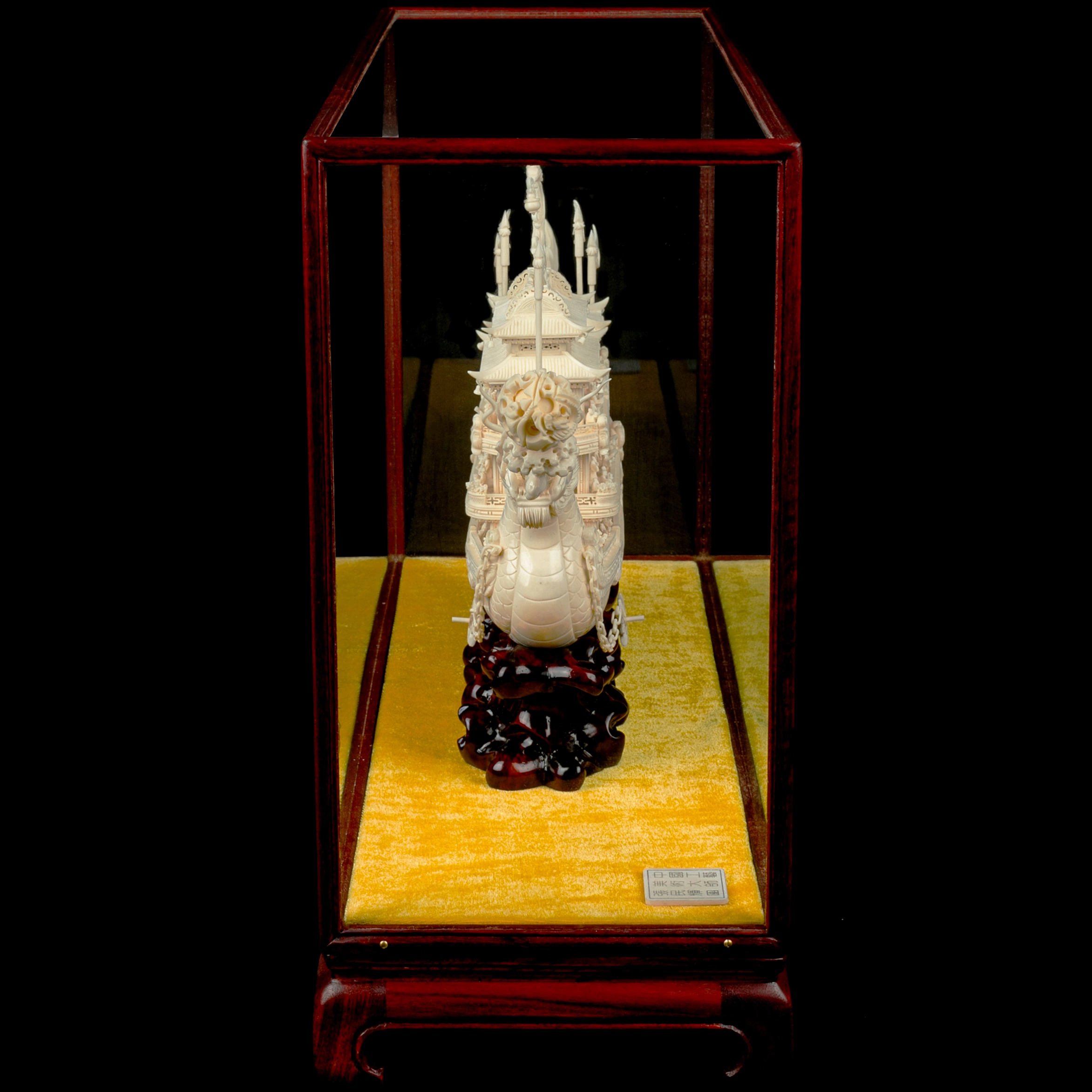 Творческий замысел: форма произведения величественна и гармонична. В работе использован широкий спектр традиционных техник — круглая резьба, рельеф, сквозная ажурная проработка, сложные многоярусные композиции и мозаичные элементы. Все детали исполнены с исключительной точностью и вниманием к мельчайшим нюансам.