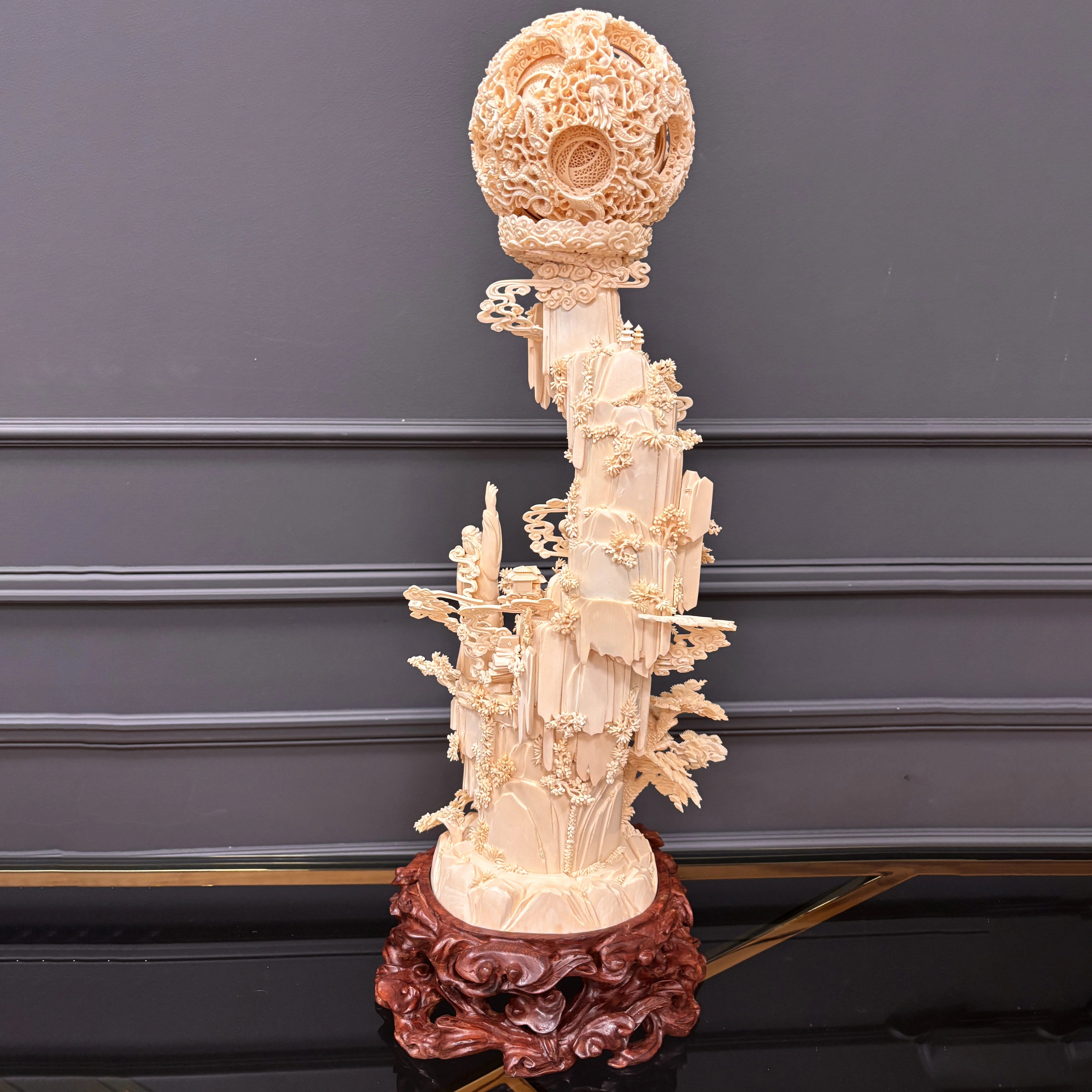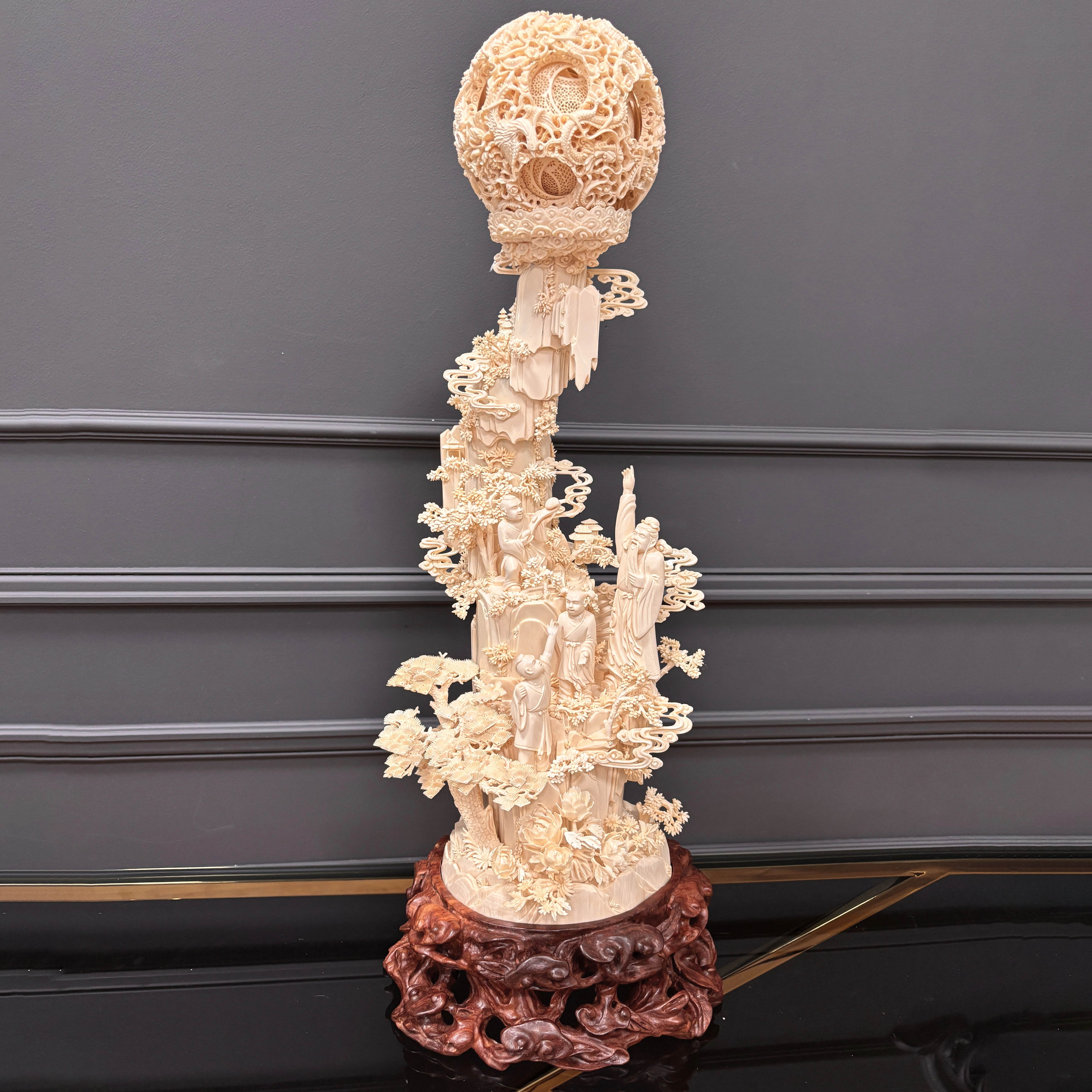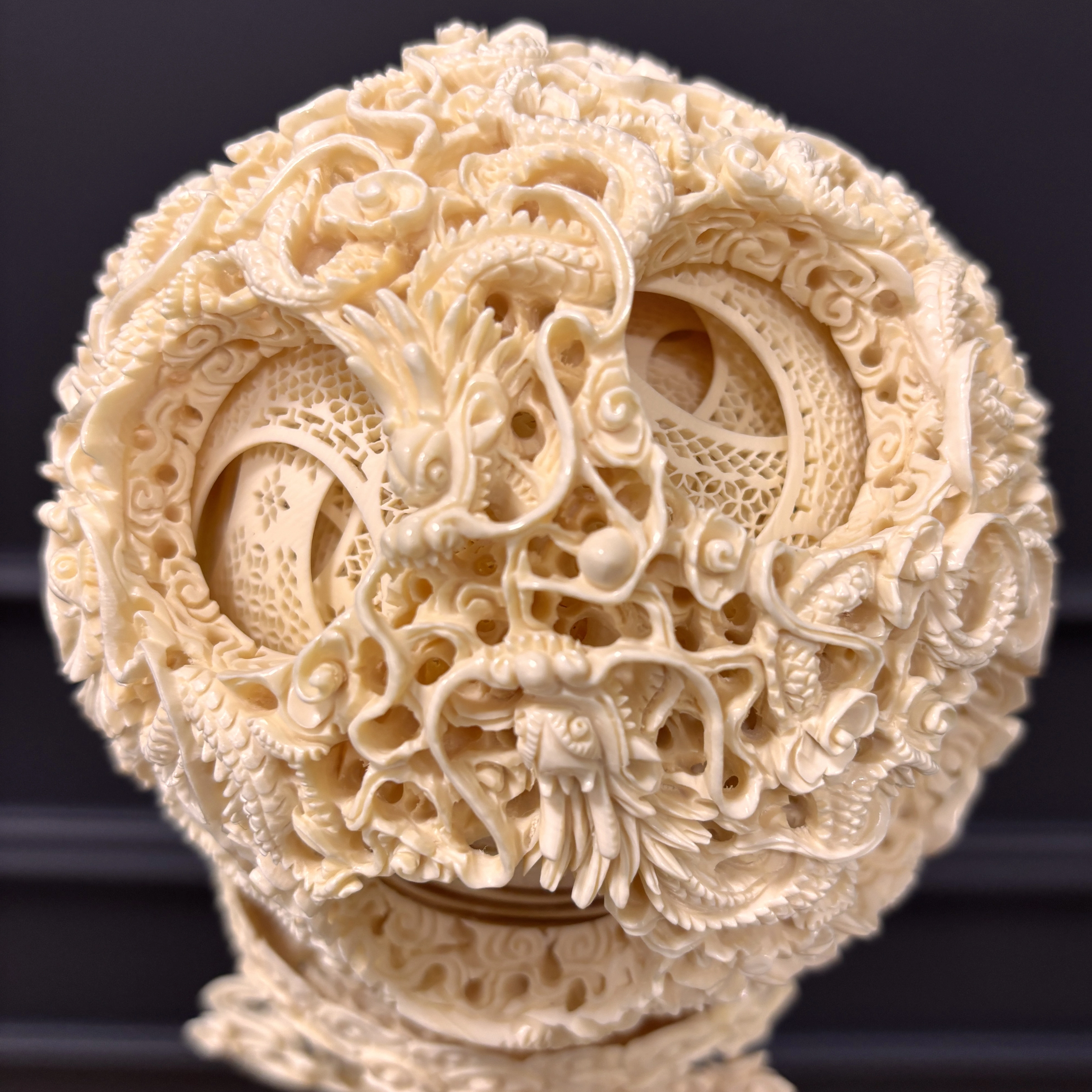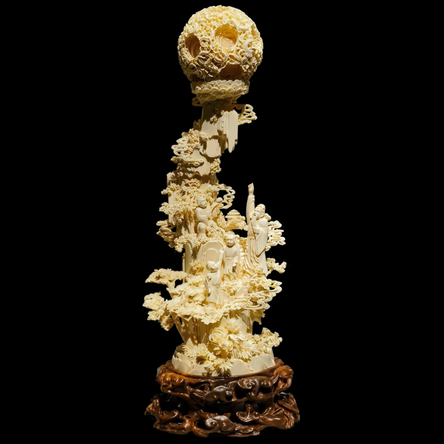 Кантонский шар из слоновой кости, известный также как «призрачный шар», — один из наиболее характерных видов гуанчжоуской резьбы, сформировавшийся ещё в эпоху династии Мин. Его уникальность заключается в том, что цельный фрагмент кости выдалбливается в многослойную сферу с переплетающимися ажурными оболочками. Каждый слой тонко проработан собственным сквозным орнаментом и может свободно вращаться внутри последующего, создавая впечатление лёгкости и почти невесомой прозрачности.