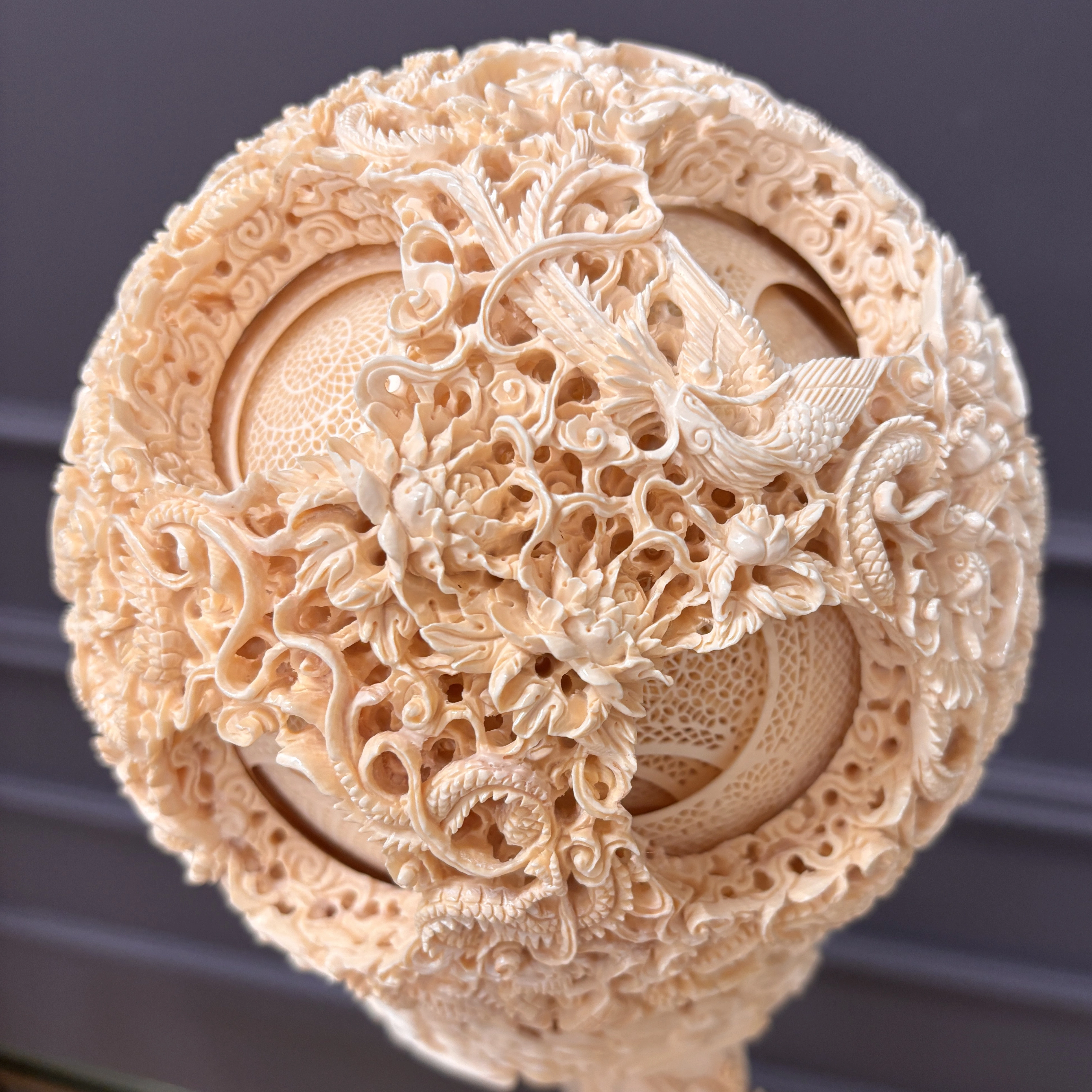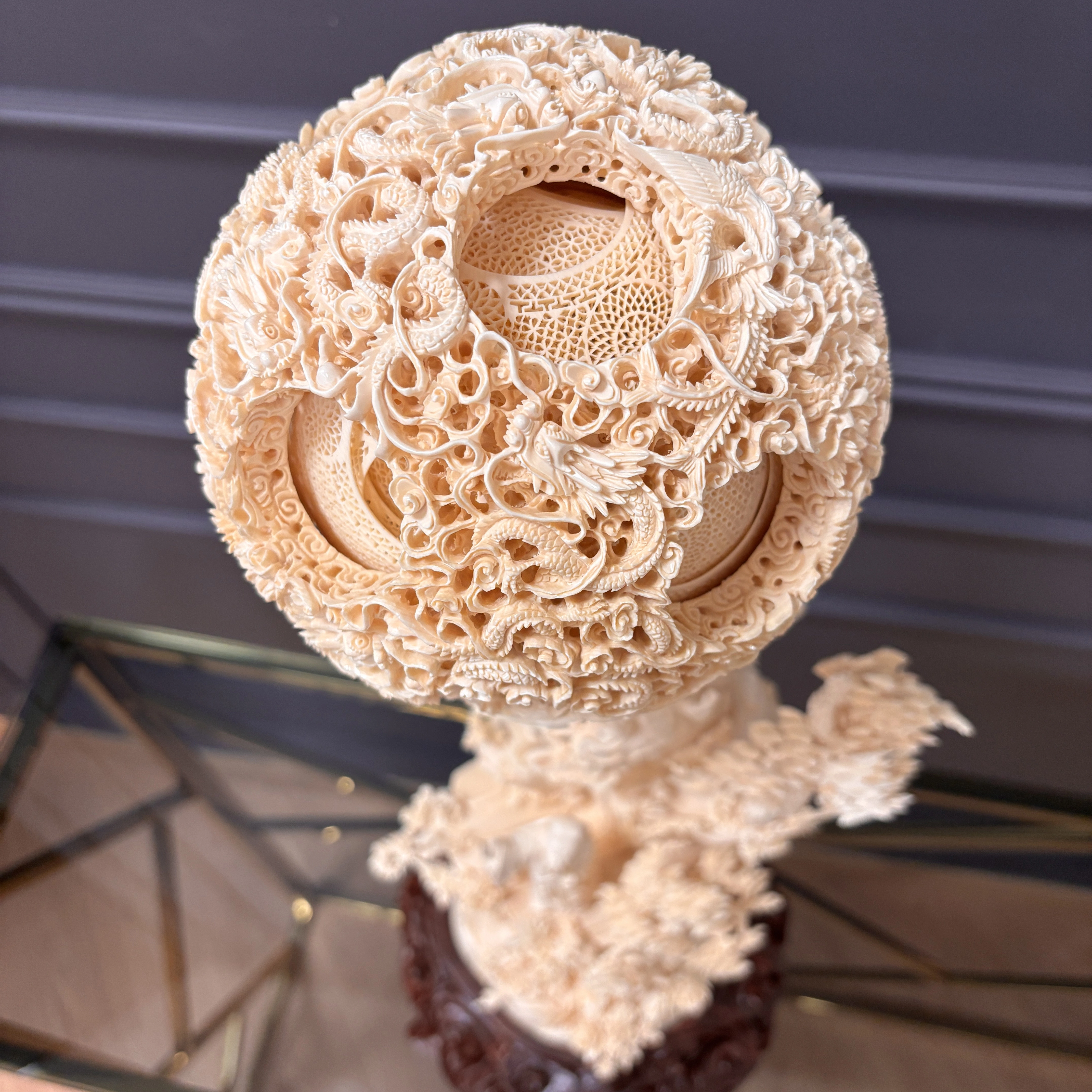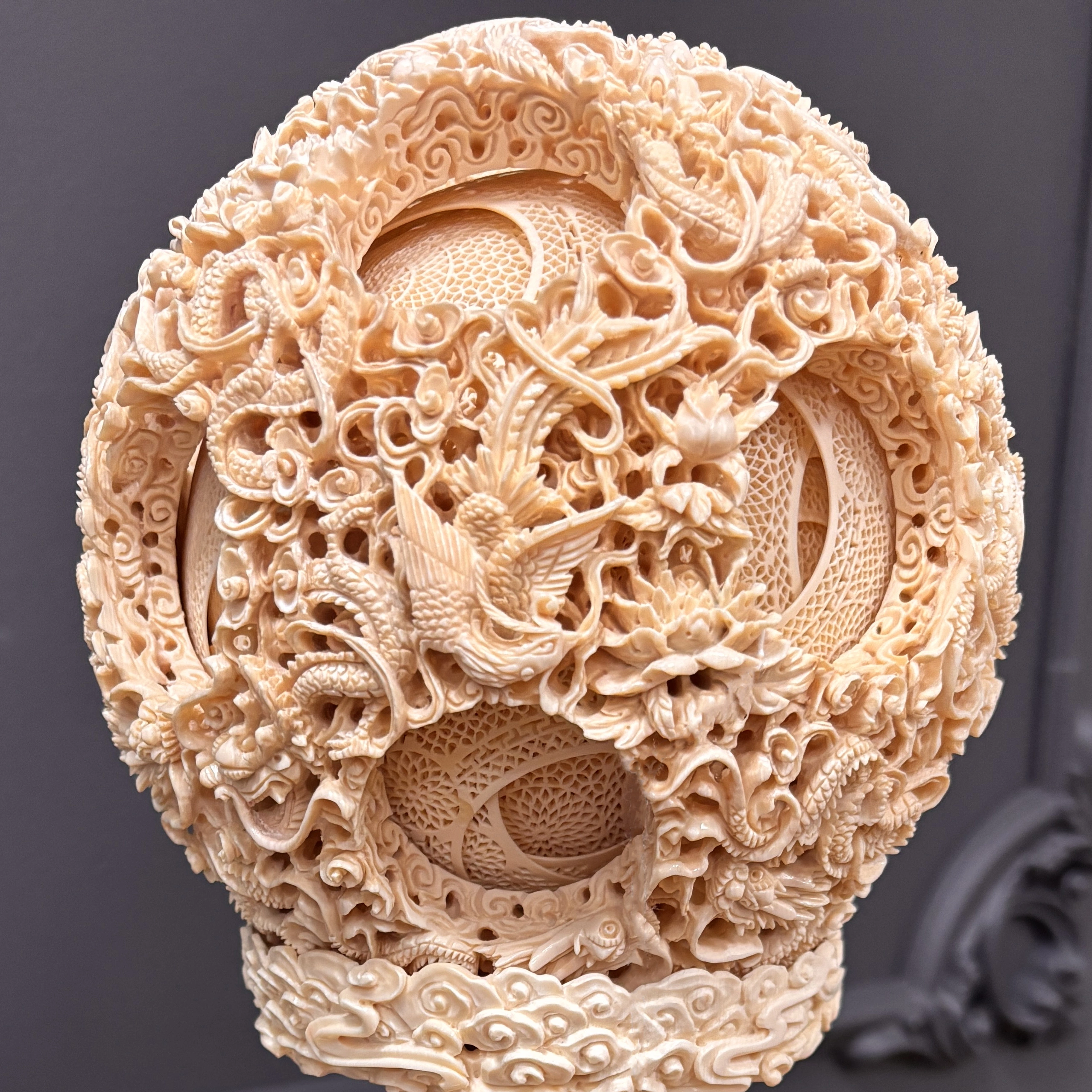 Процесс выдалбливания цельной многослойной сферы чрезвычайно трудоёмок и связан с высоким риском повреждения материала на любом этапе. Именно эта техническая сложность в сочетании с художественной изобретательностью придаёт «призрачному шару» его неповторимое очарование и делает каждое произведение свидетельством выдающегося мастерства.