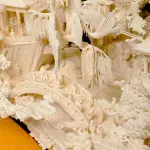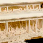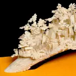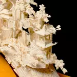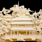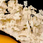 Композиция из бивня мамонта «Прекрасный Китай», выполненная в технике кантонской резьбы, представляет собой масштабное произведение декоративно-прикладного искусства, объединяющее в едином пространстве архитектуру, природу и человеческие сцены. Работа создана из бивня мамонта, природная дуга которого легла в основу всей пластики композиции. Изгиб материала превращён в мост времени, над которым разворачивается панорама древнего Китая — с дворцовыми павильонами, террасами, мостами и беседками, скрытыми среди густых садов.