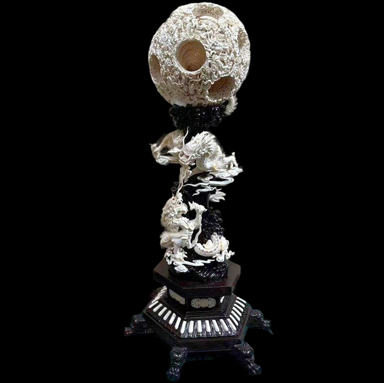 Композиция из бивня мамонта с кантонским шаром "Дракон"