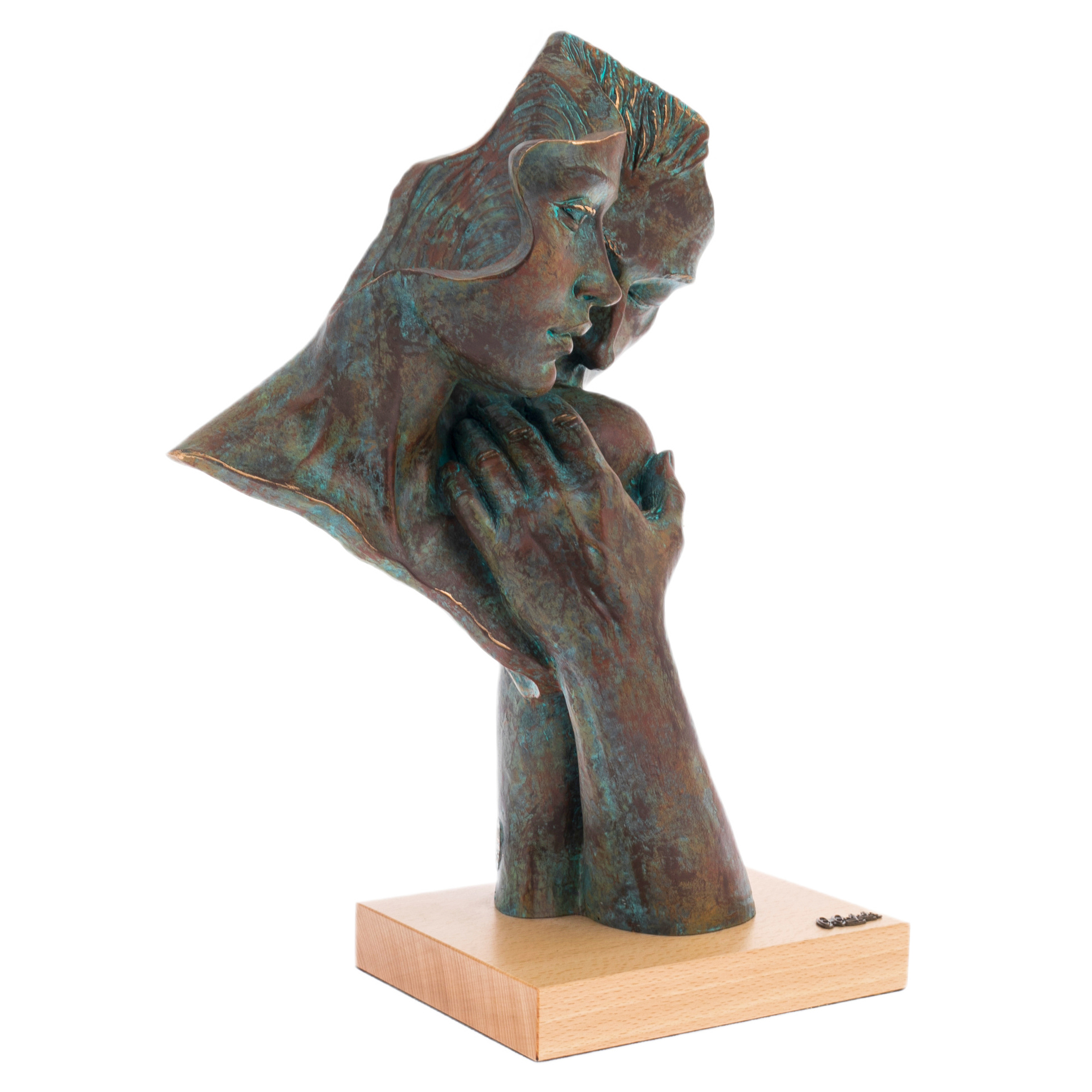 Two silhouettes, two souls, two destinies are woven together in the bronze plastic enclosed in this work. The woman's face is a translucent mask of emotions, frozen in a rush of feelings, like a reflection of a secret world hidden behind external calm. A man's face, framed by sharp features, reaches out to her, sinking into the shadow of her presence, merging with her in a silent dialogue of affection.