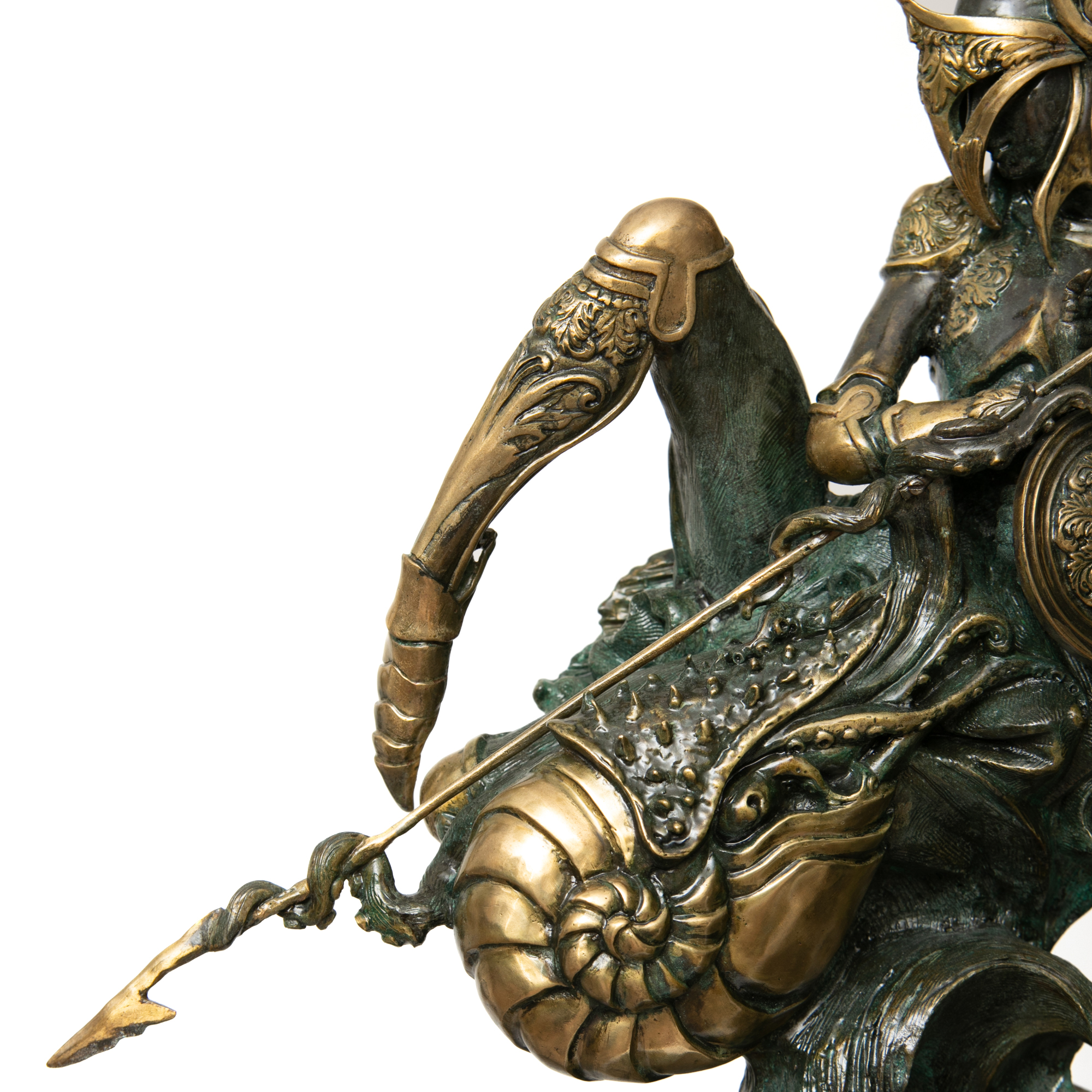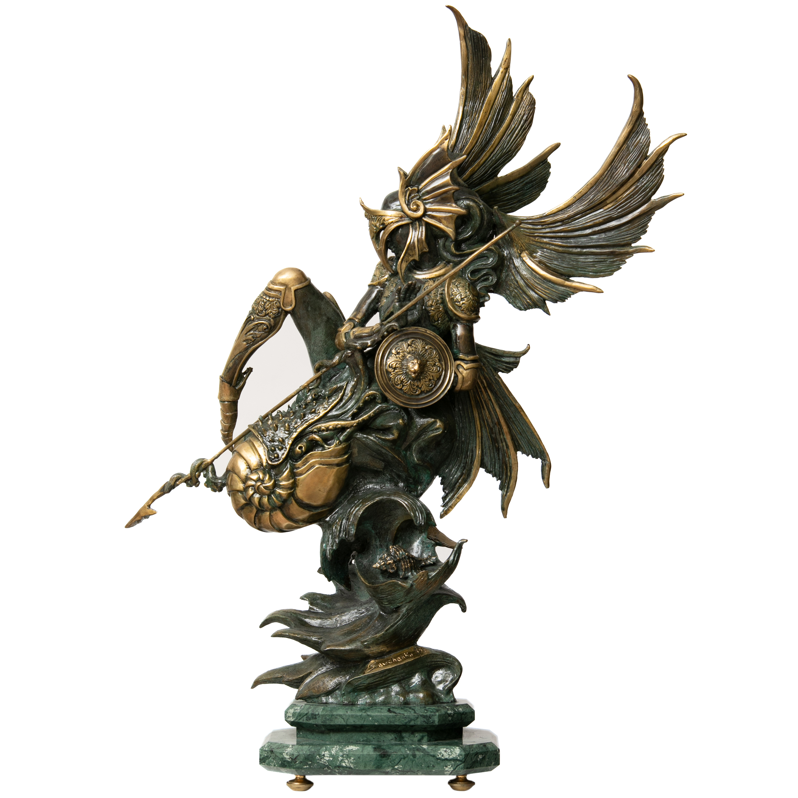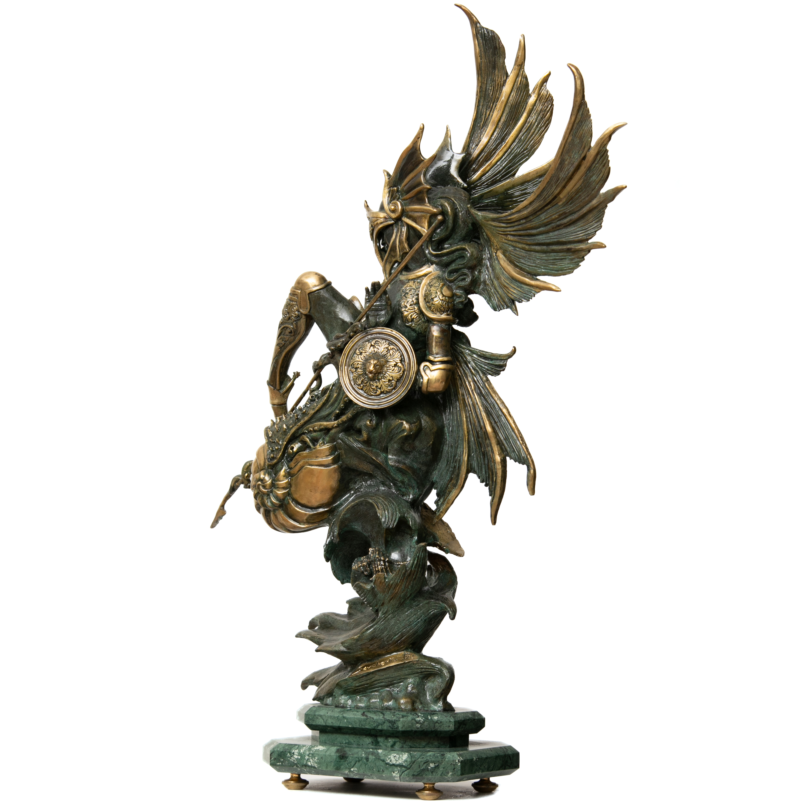 The Nautilus, symbolizing perfection and eternity, is represented here as a fantasy marine guard, decorated with rich ornaments and relief images, as if they had come out of legends. Each line and curve of the sculpture's body, exquisitely crafted by the master, is transported to a world of mystery and luxury, where every touch of light on brass enlivens its surface with iridescences of warm radiance.
