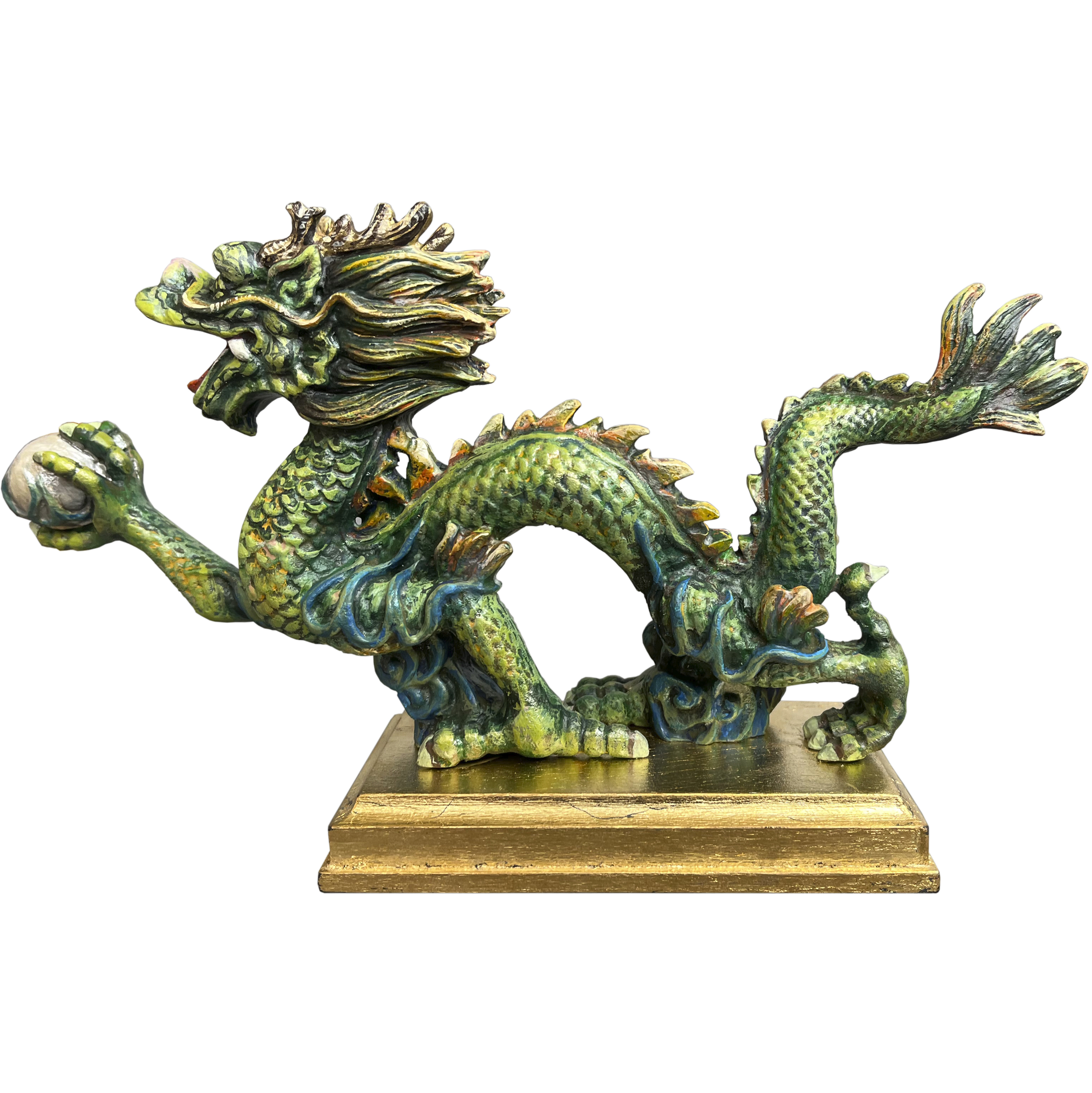 Statuette made of solid alder "Green Oriental Dragon" 18+