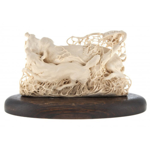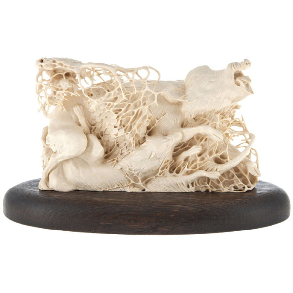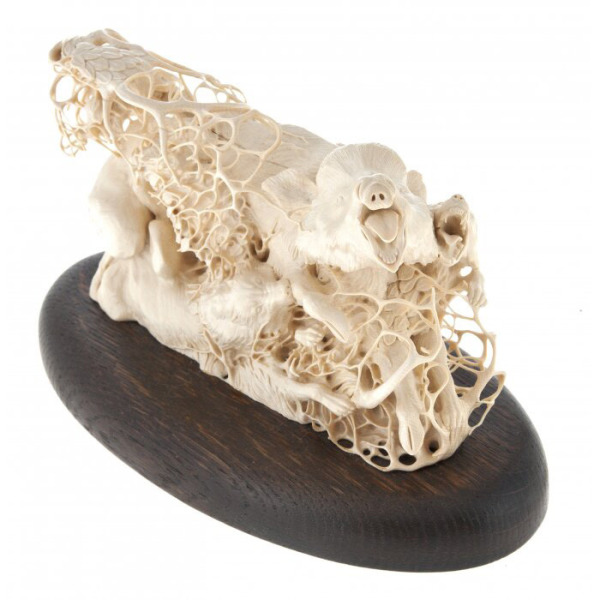 Sculpture of a mammoth tusk "Prey"Sculpture of a mammoth tusk "Prey"Bone is a material that harbors the warmth of life. It simultaneously combines strength and plastic expressiveness, a tangible constructive basis and flexibility. A sculptural composition made of bone, placed among ordinary things, can enliven the interior in its own way, fill it with a new meaning.