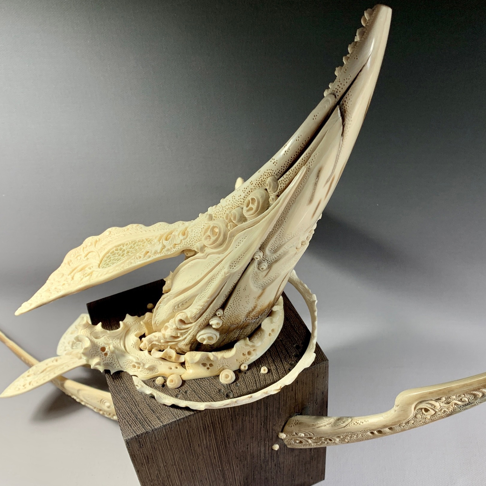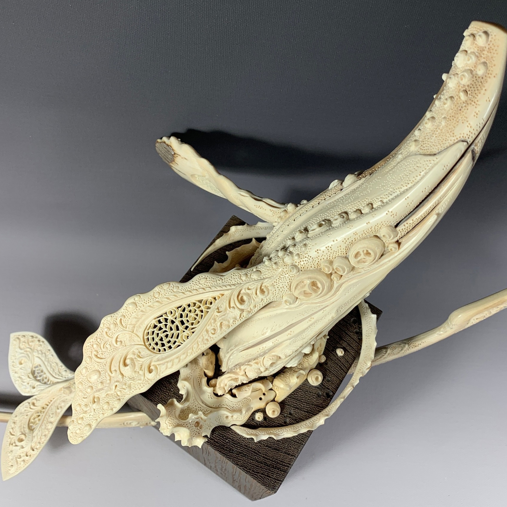 Highly artistic sculpture "Secrets of the Ocean" from a mammoth tusk