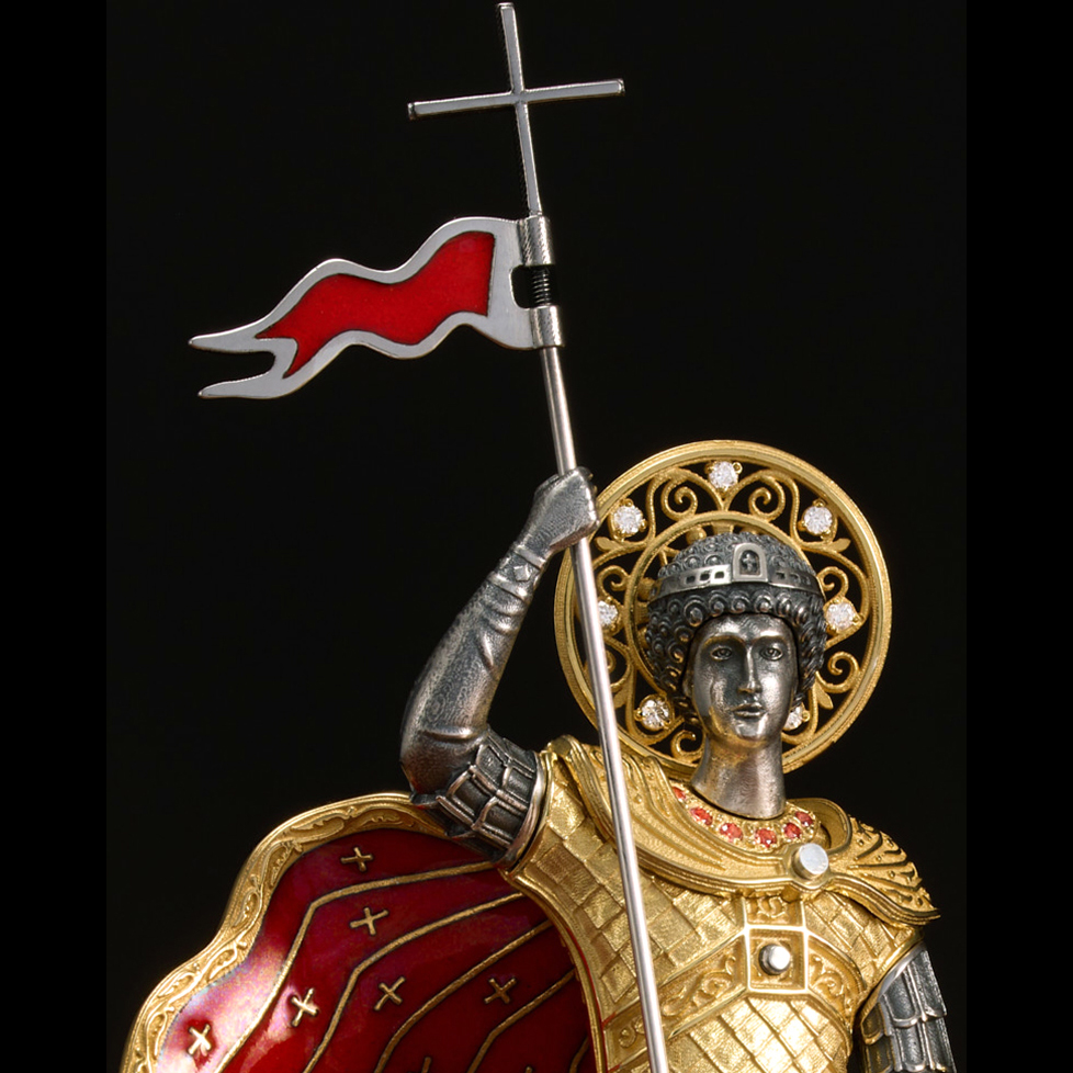 Jewelry souvenir made of silver "George the Victorious" with diamonds and sapphires