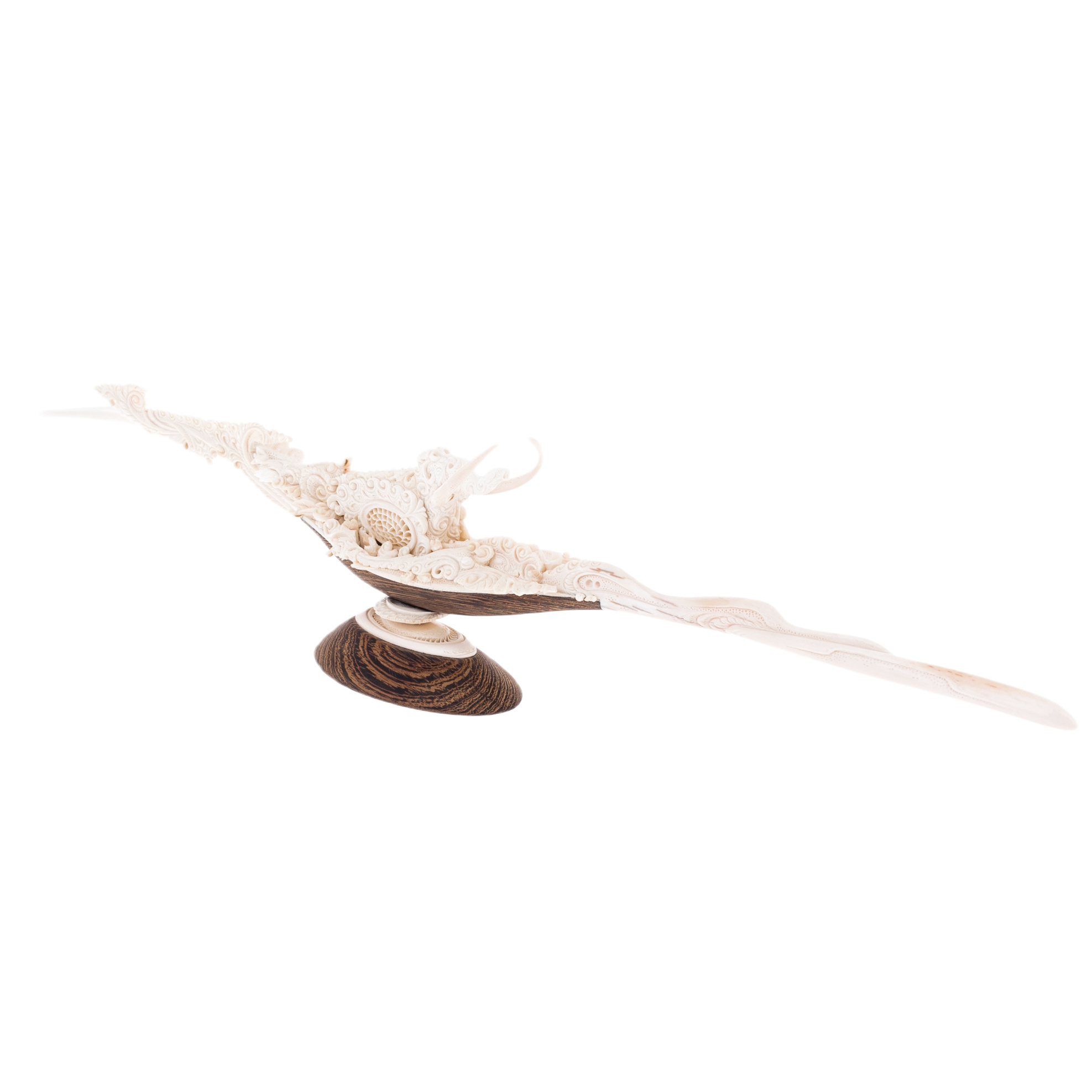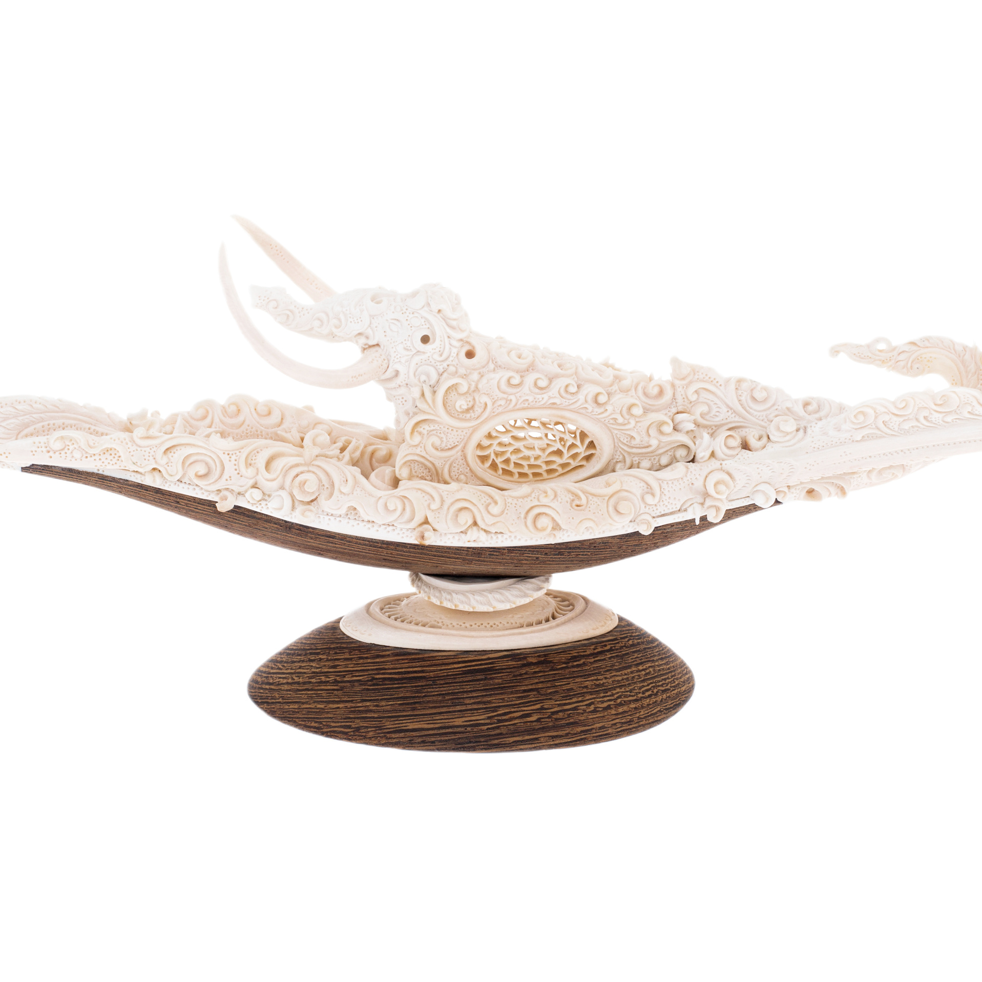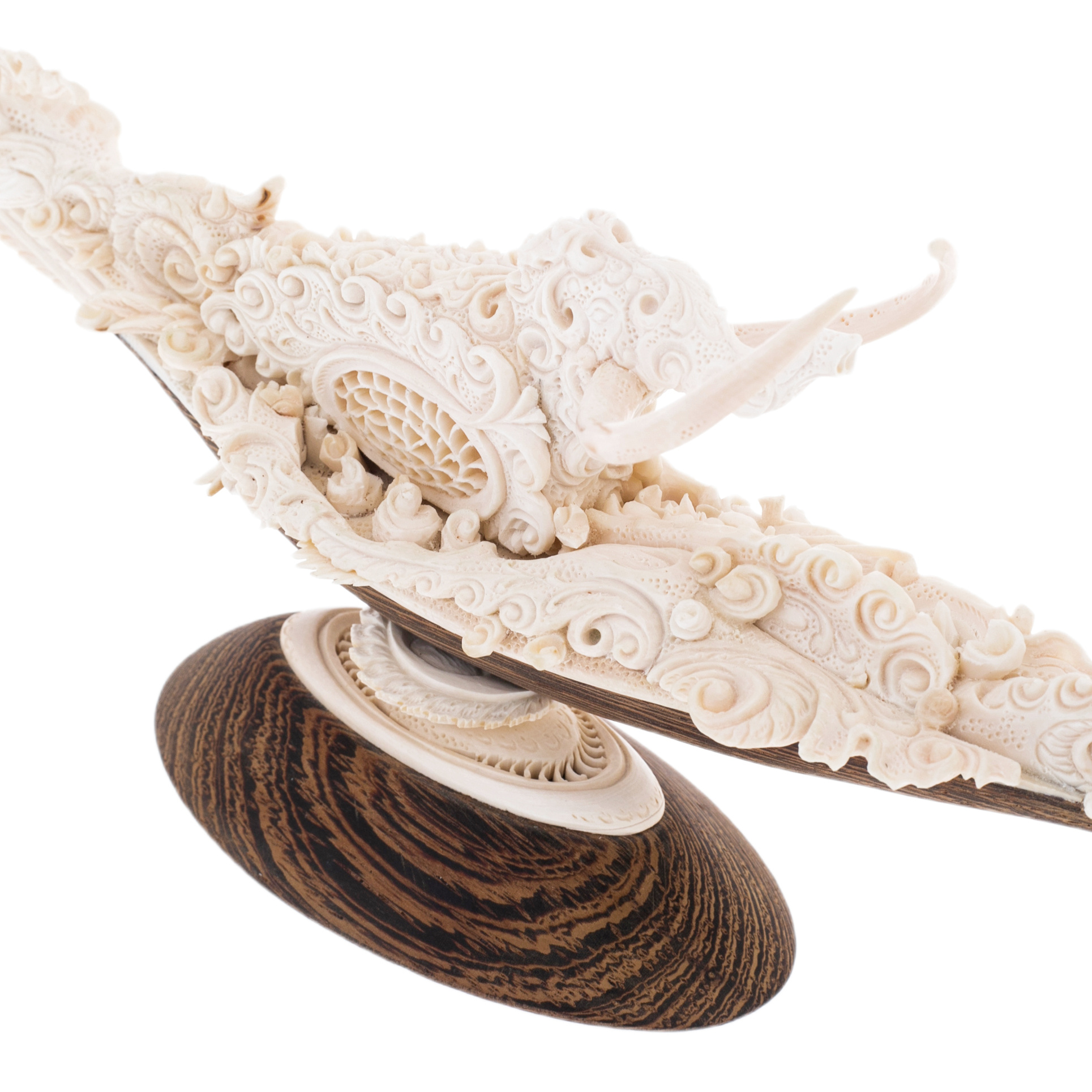 In each curl of the carving there is an ancient pattern of the universe, reminding that life is a constant flow of energy striving for its goal. The depth of the lines and the filigree elaboration of the smallest details create a feeling of lightness and weightlessness, as if the air itself awakens movement leading to eternity. Like a fairy-tale boat carrying a hero to unexplored horizons, the mammoth sails through the ages, leaving behind not a trace, but an echo of power and greatness.
