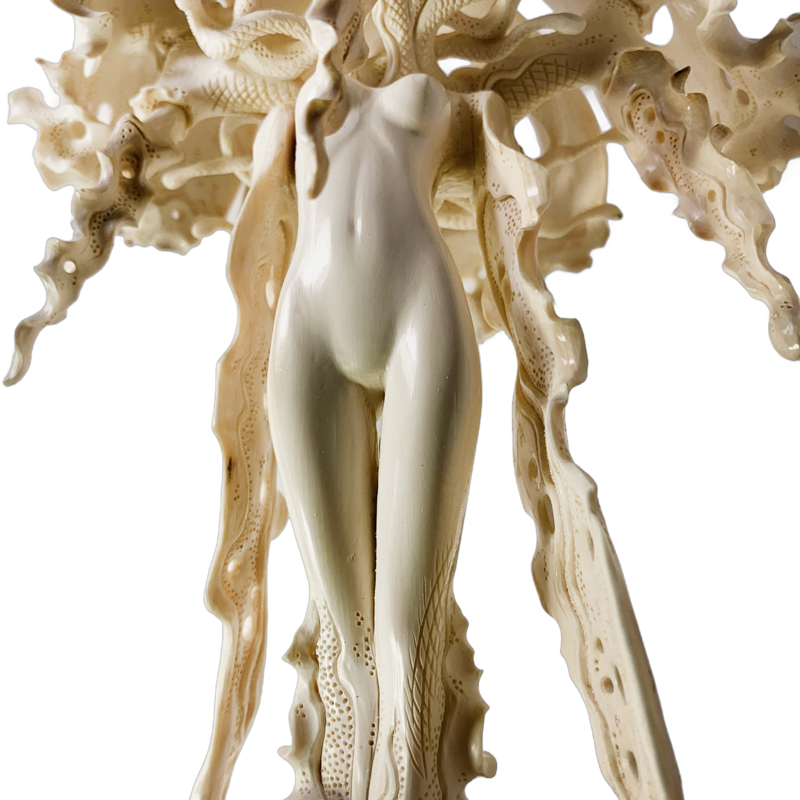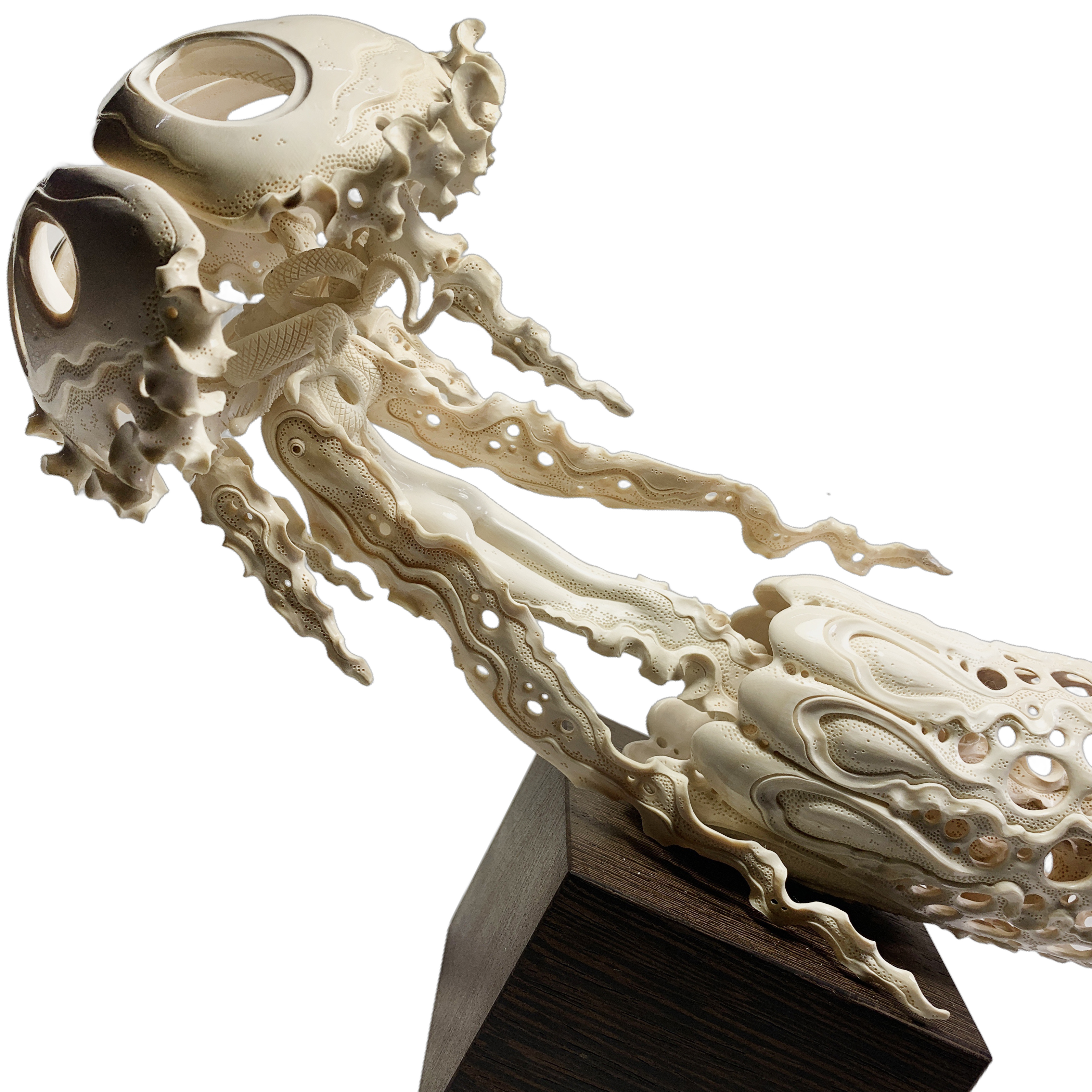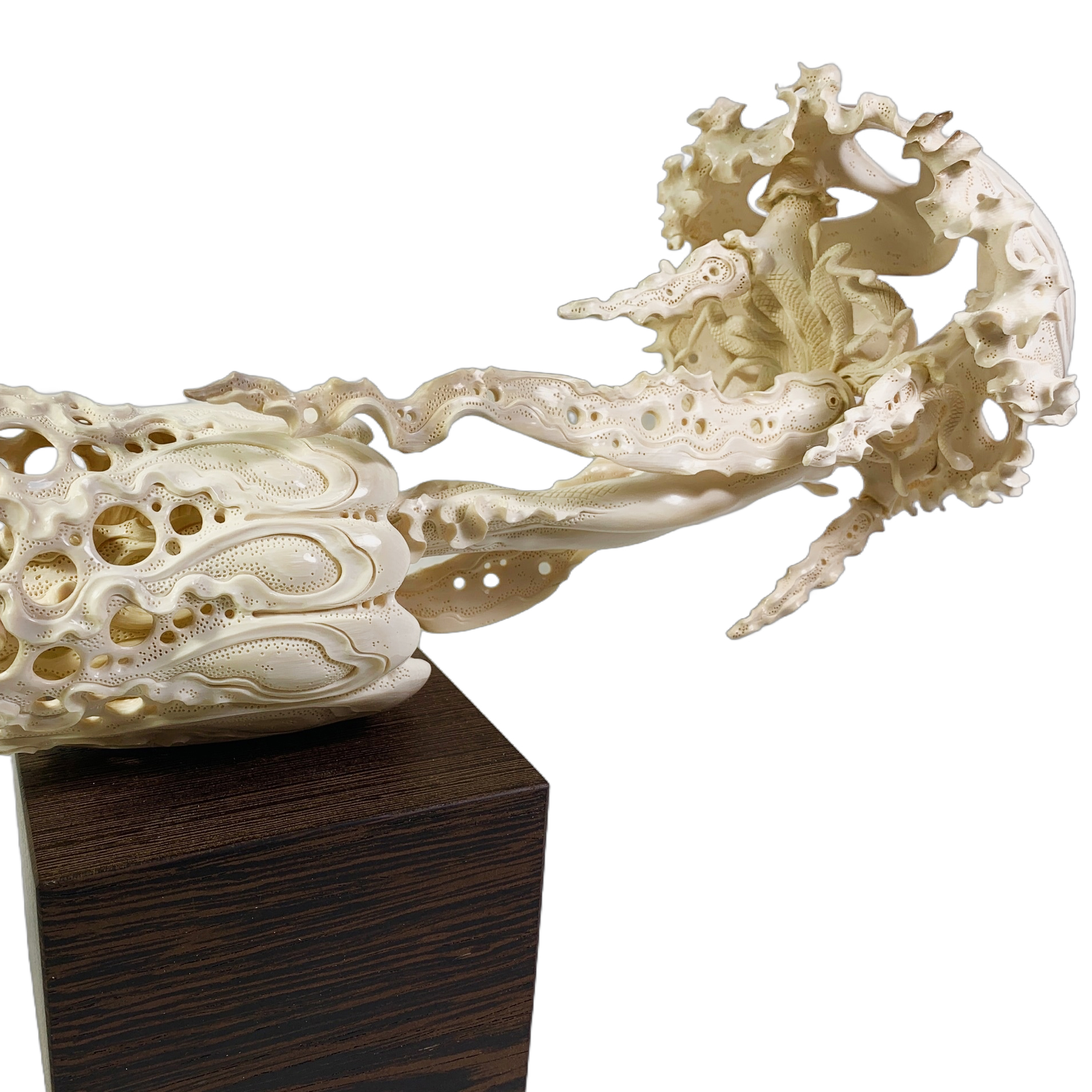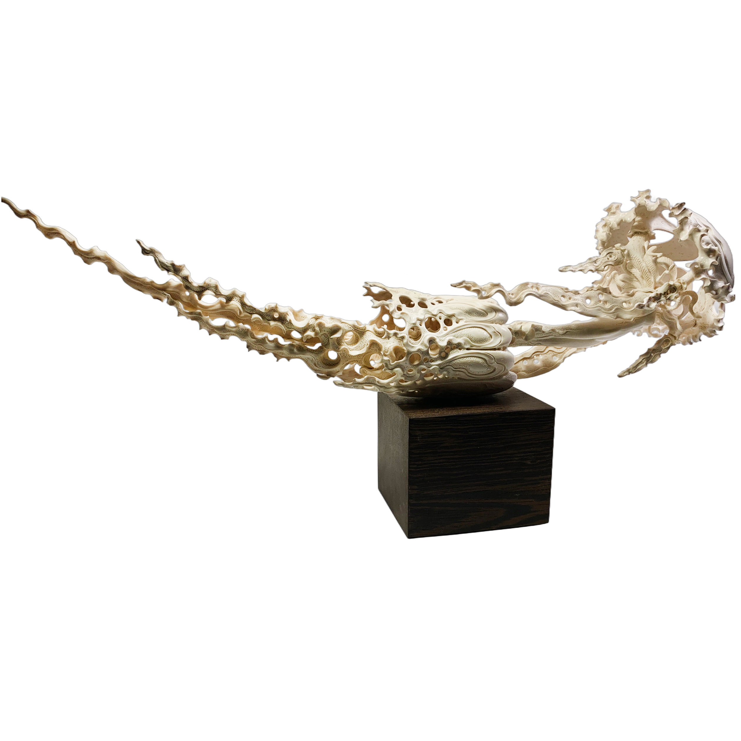 Highly artistic sculpture "Ocean of Desires" from a mammoth tusk