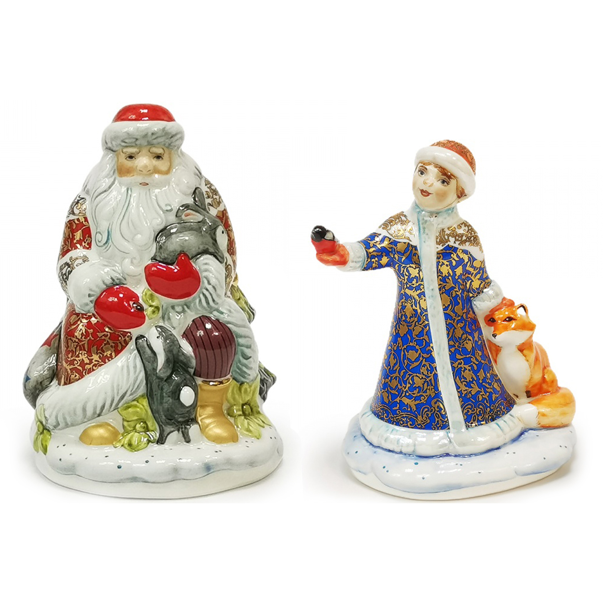 A set of Christmas figurines made of porcelain "Santa Claus and the Snow Maiden"
