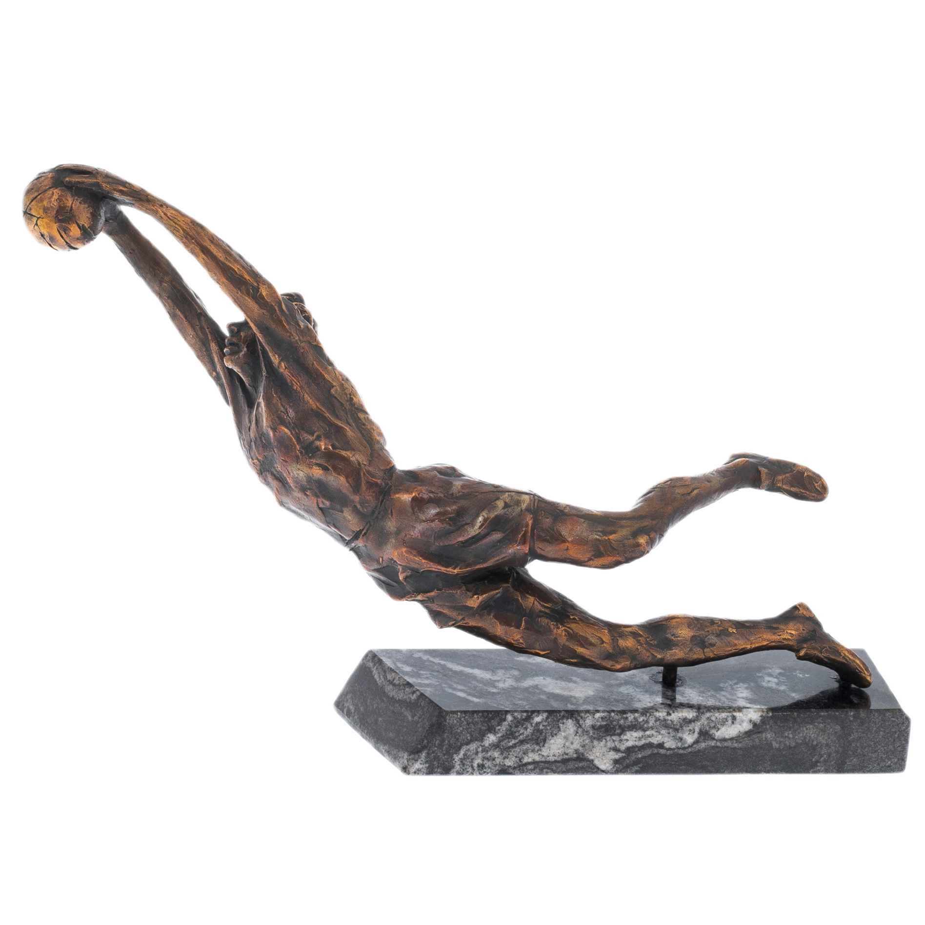 Each line of this sculpture conveys power and grace. The delicate facial features, tense muscles and dynamic rush are breathtaking, literally transporting the viewer to the football field, where Yashin stops the ball over and over again, causing awe and admiration. The marble base is a symbol of strength and stability, perfectly emphasizes the metallic splendor of the figure, enhancing the feeling of grandeur and inviolability.