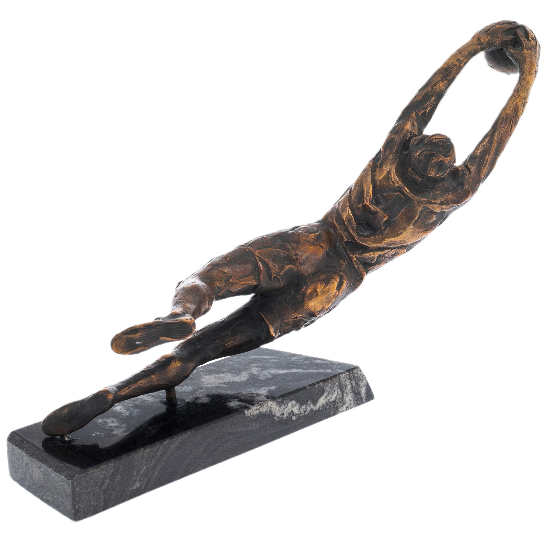 This bronze statuette, created with exquisite precision, embodies one of the most exciting moments of football art — Yashin's majestic leap for the ball, symbolizing his timeless dedication and willingness to fight to the end.