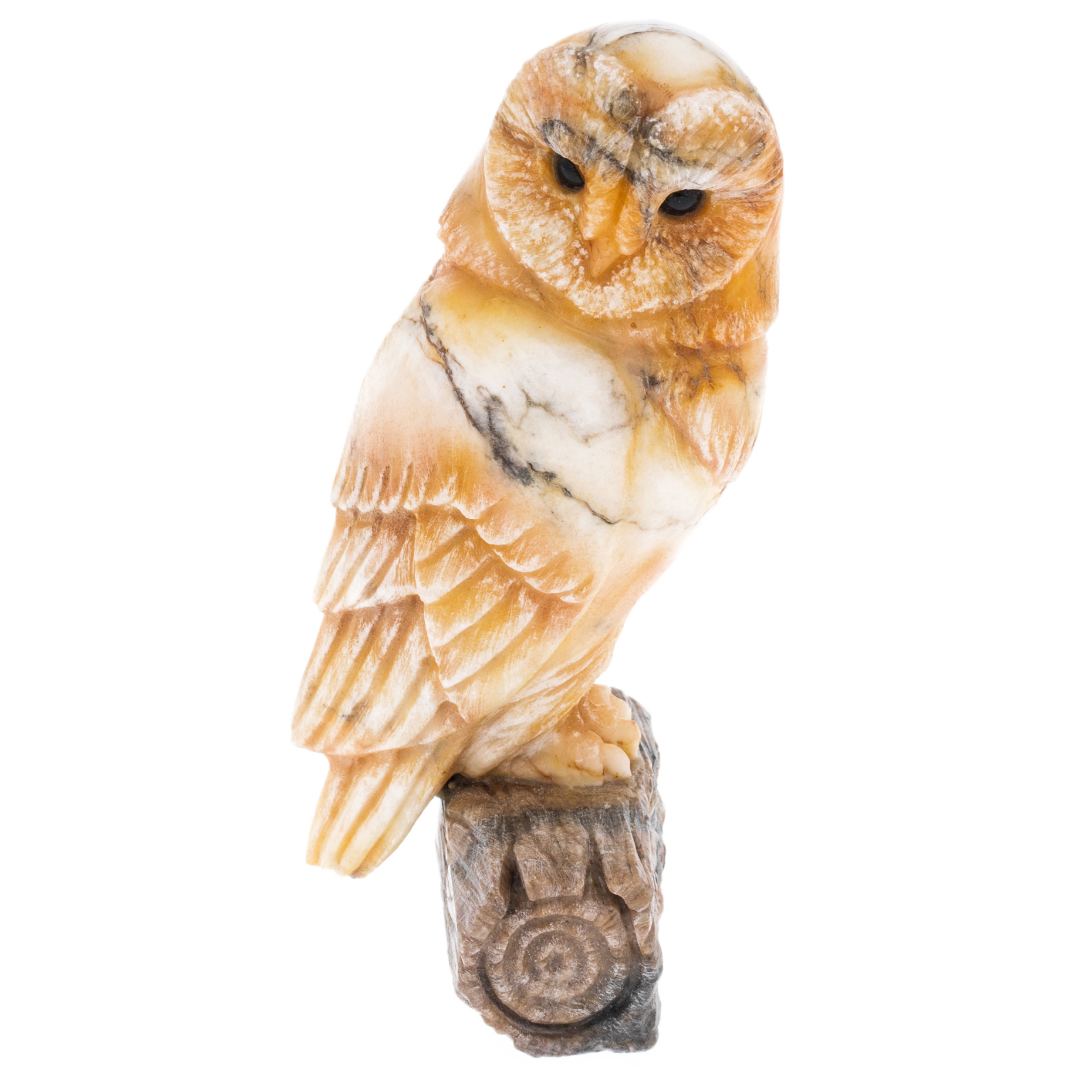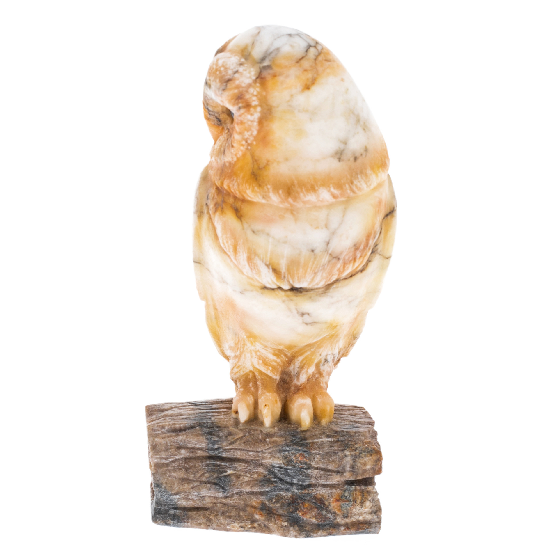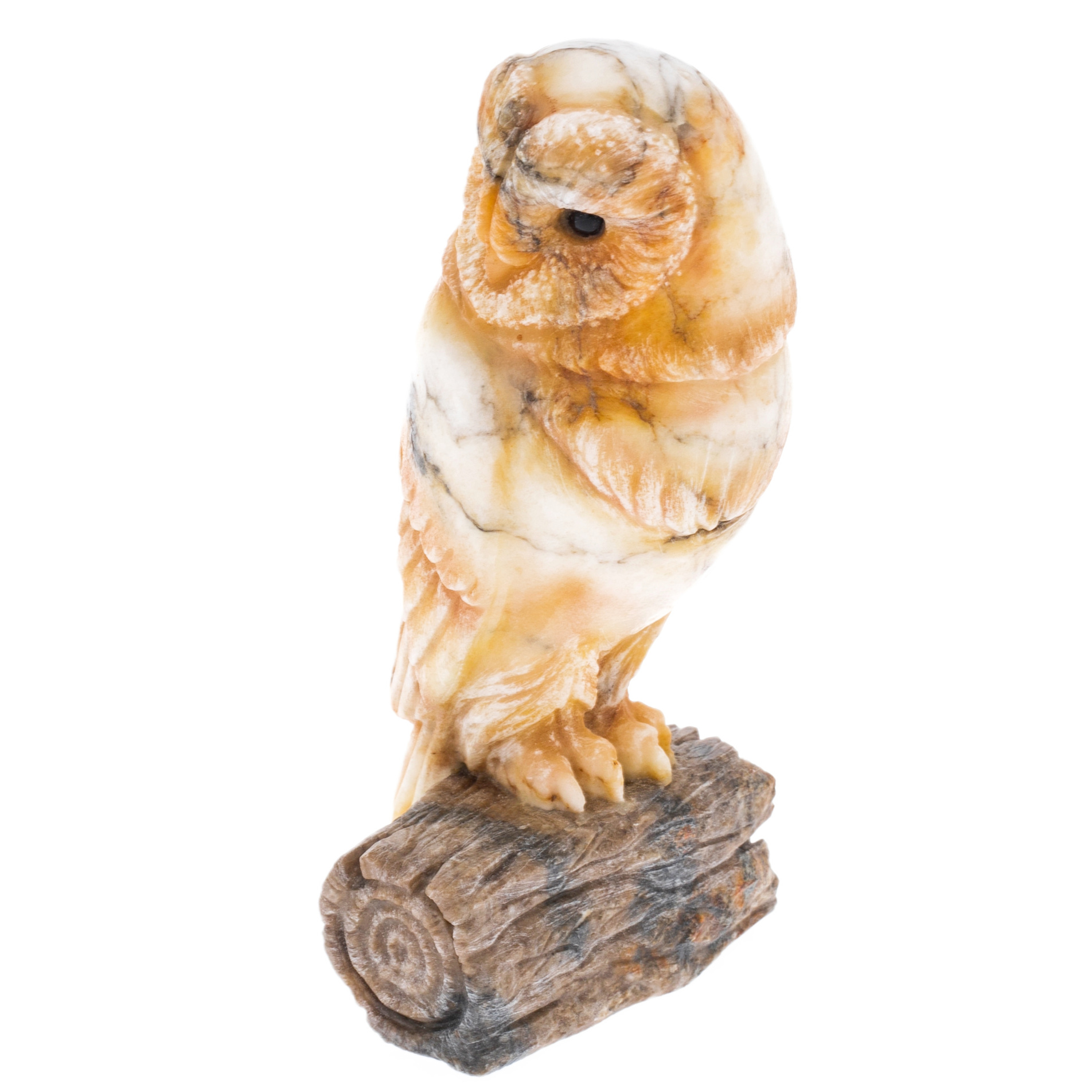 Статуэтка из желтого ангидрита "Сова на бревне"