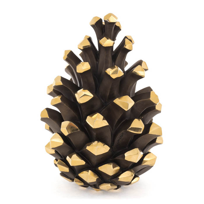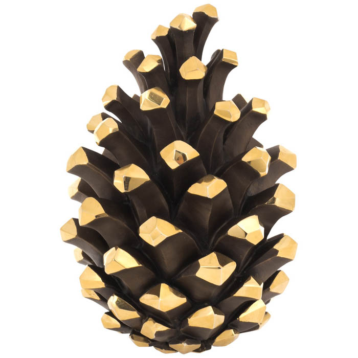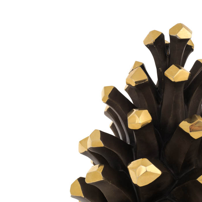 The sculpture depicts a lump, carefully worked out to each scale, which reflects the depth and detail of the master's approach to creating this work. The scales of the cone are covered with gilding, which adds an exquisite contrast to the dark bronze and gives the product a radiant and noble appearance.