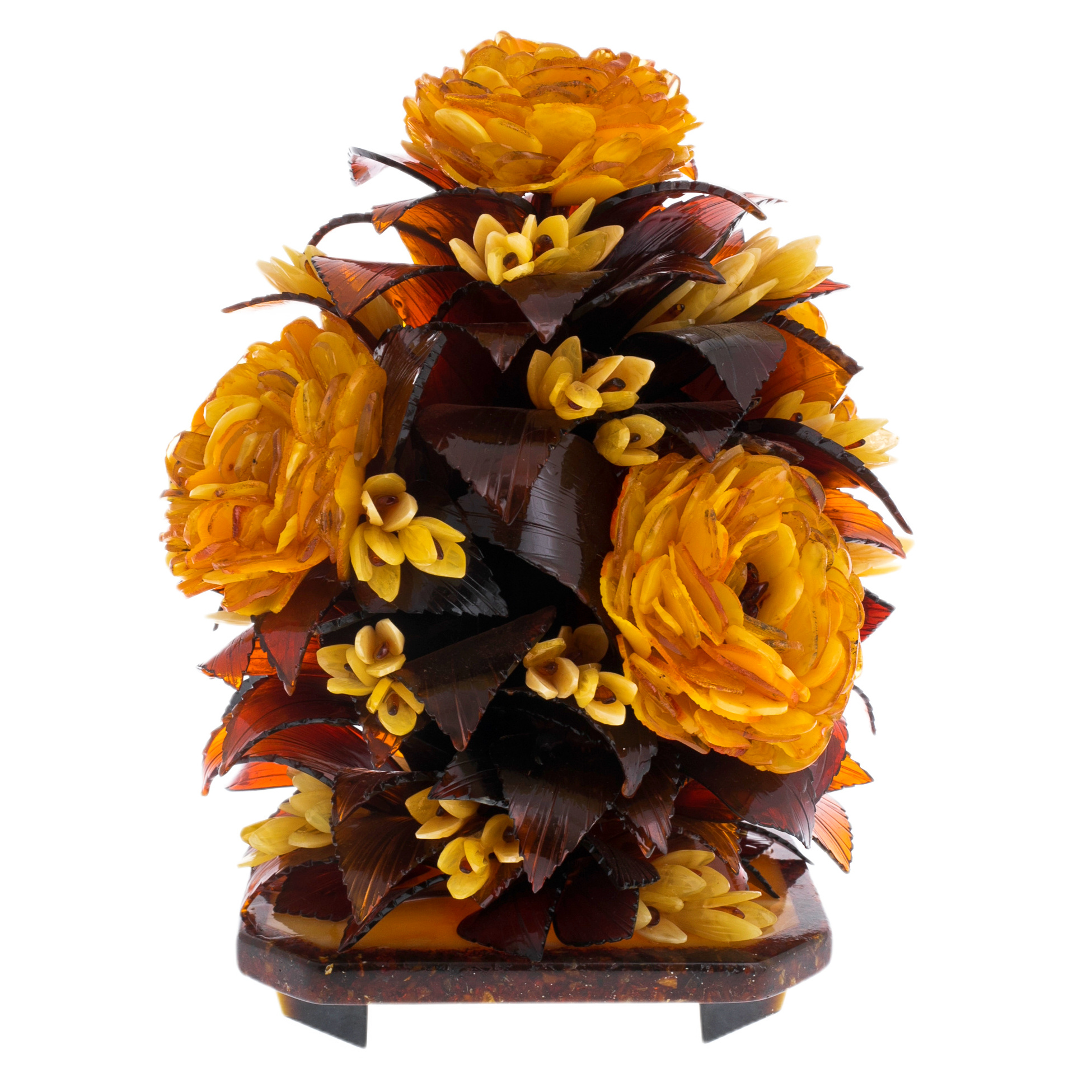 The base of the ikebana, made of polished amber, gives the entire structure stability and completeness, like a solid foundation on which splendor rests. The finest work of the masters emphasizes the organicity of the composition, where each flower seems to continue to grow, as if obeying the natural course of time. The curved lines of the petals convey the softness and smoothness inherent in nature, creating a sense of movement despite the immobility of the shape.