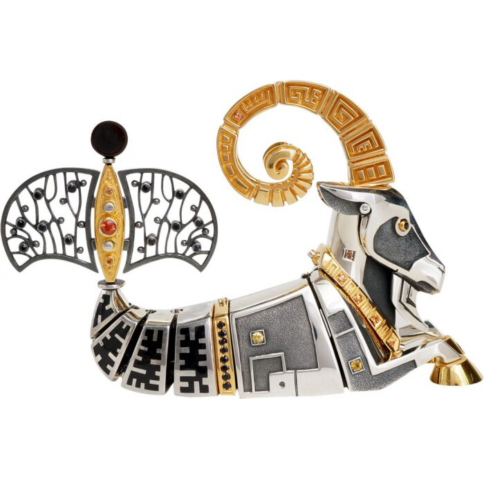 Gemstone Content:hot enamel, sapphires 65 pcs. 1,446 carats, pearls..
