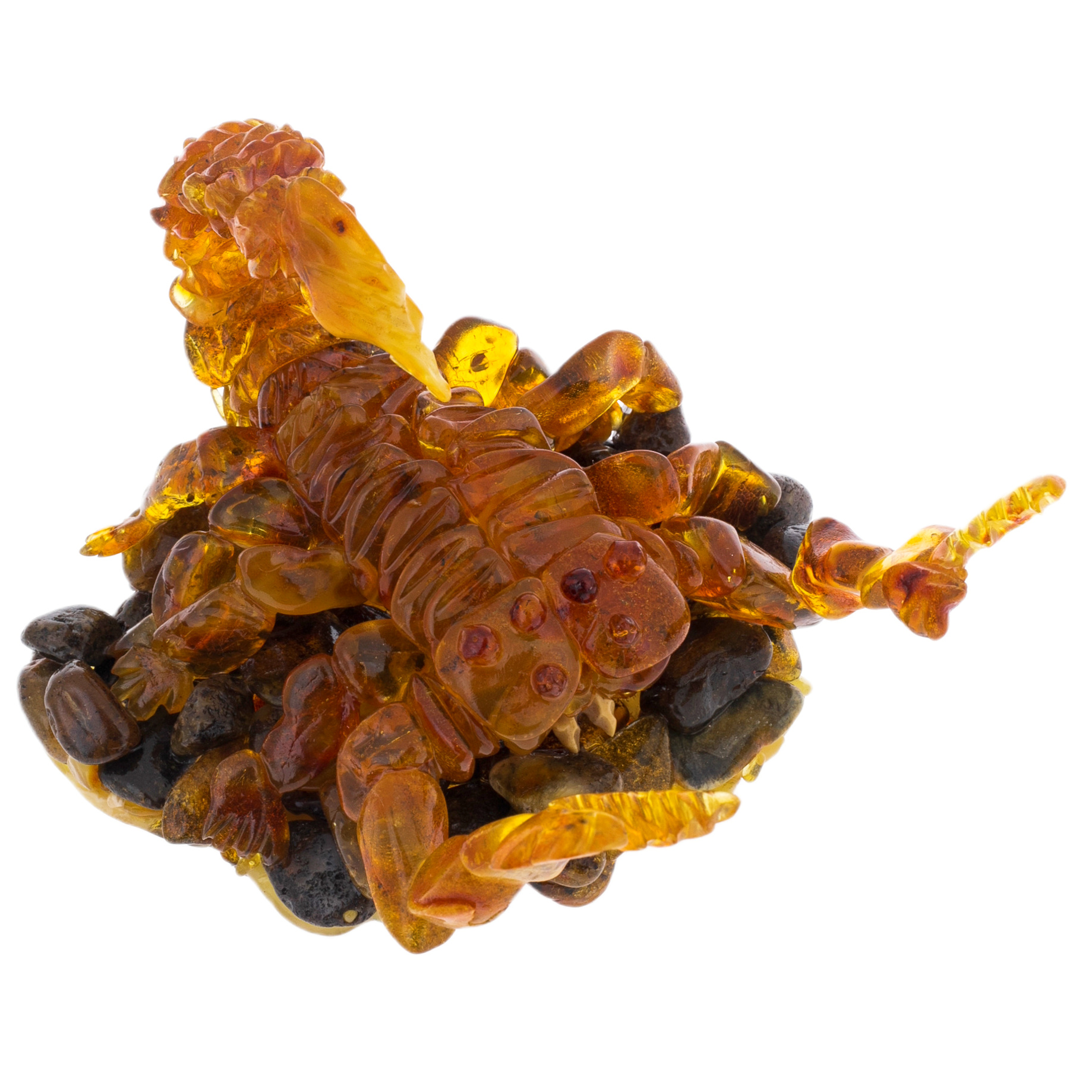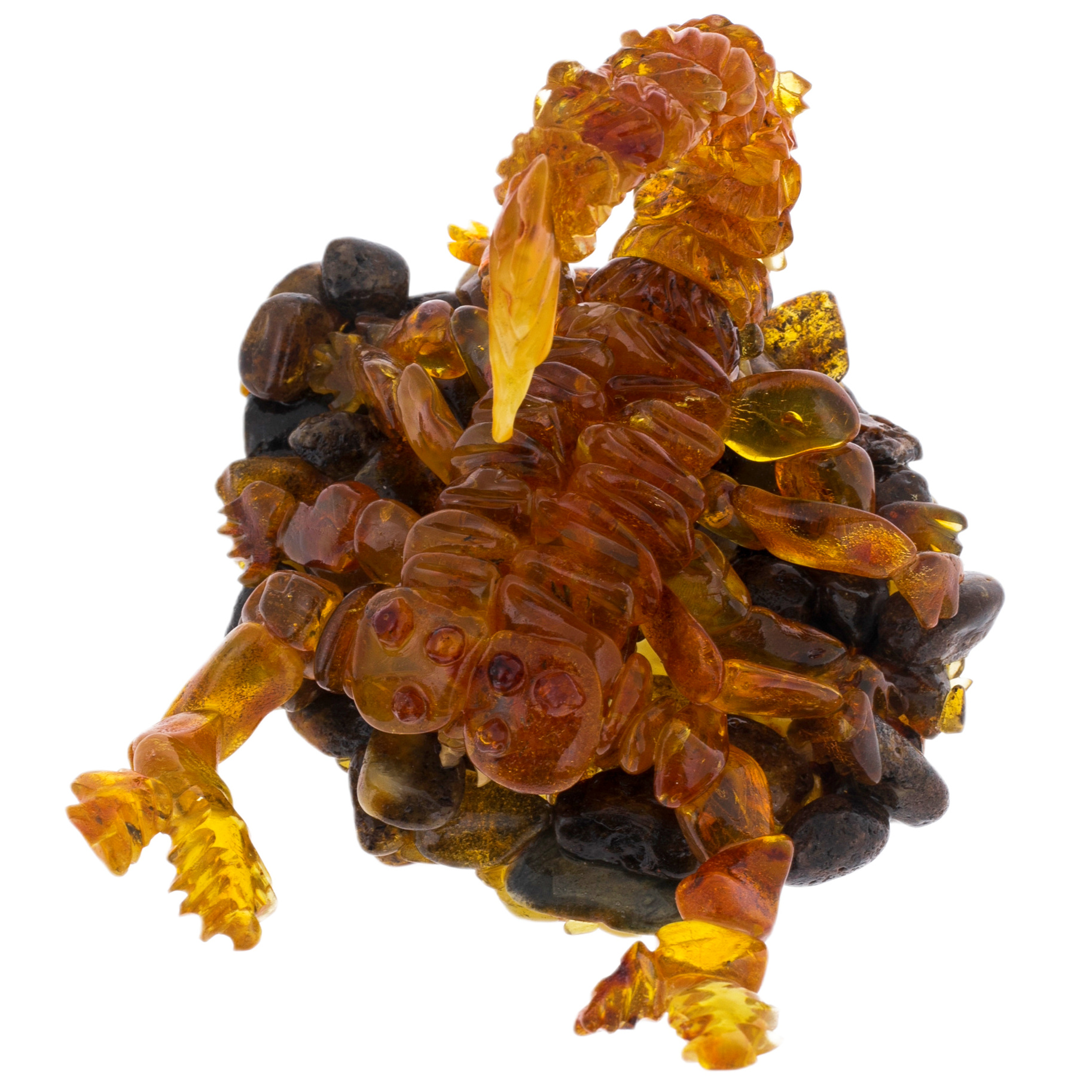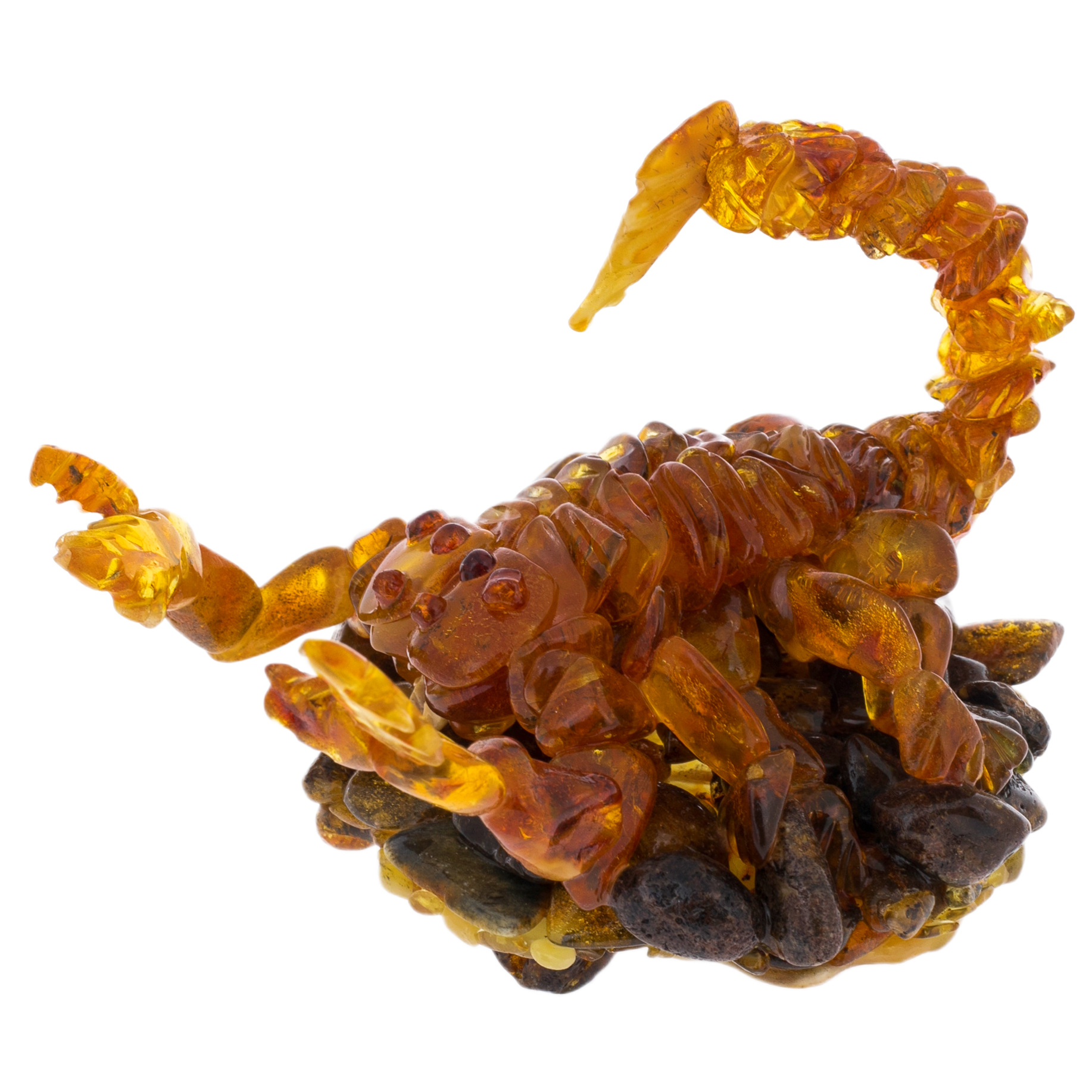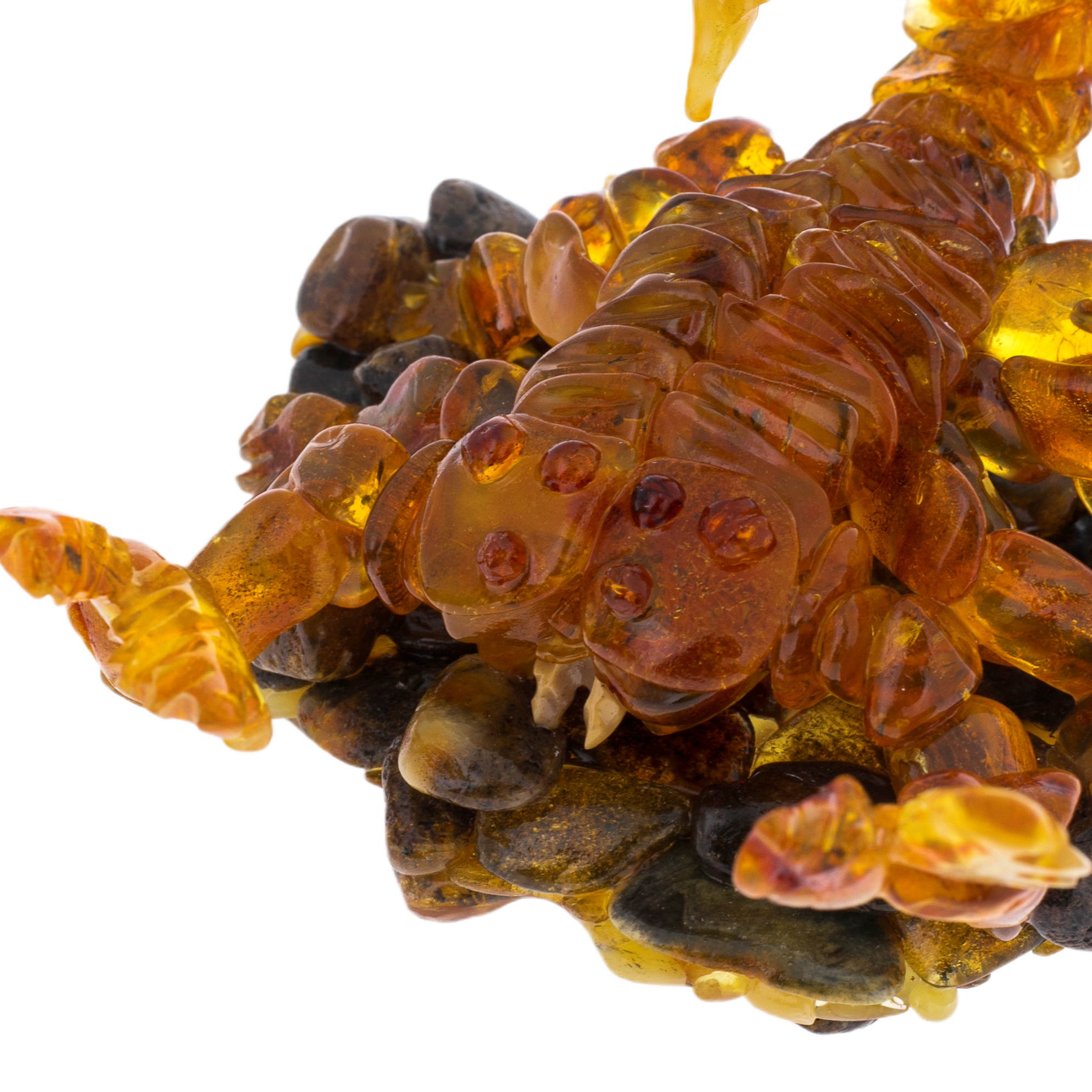 This unique amber souvenir is the epitome of the power hidden in nature. The scorpion, assembled from pieces of a sunstone, fascinates not only with its shape, but also with its character. Every element, every amber detail, seems to contain the ancient power of the Earth, extracted from the depths of time. And he is not static — there is an indomitable movement in him, an energy that is ready to burst out at any moment.