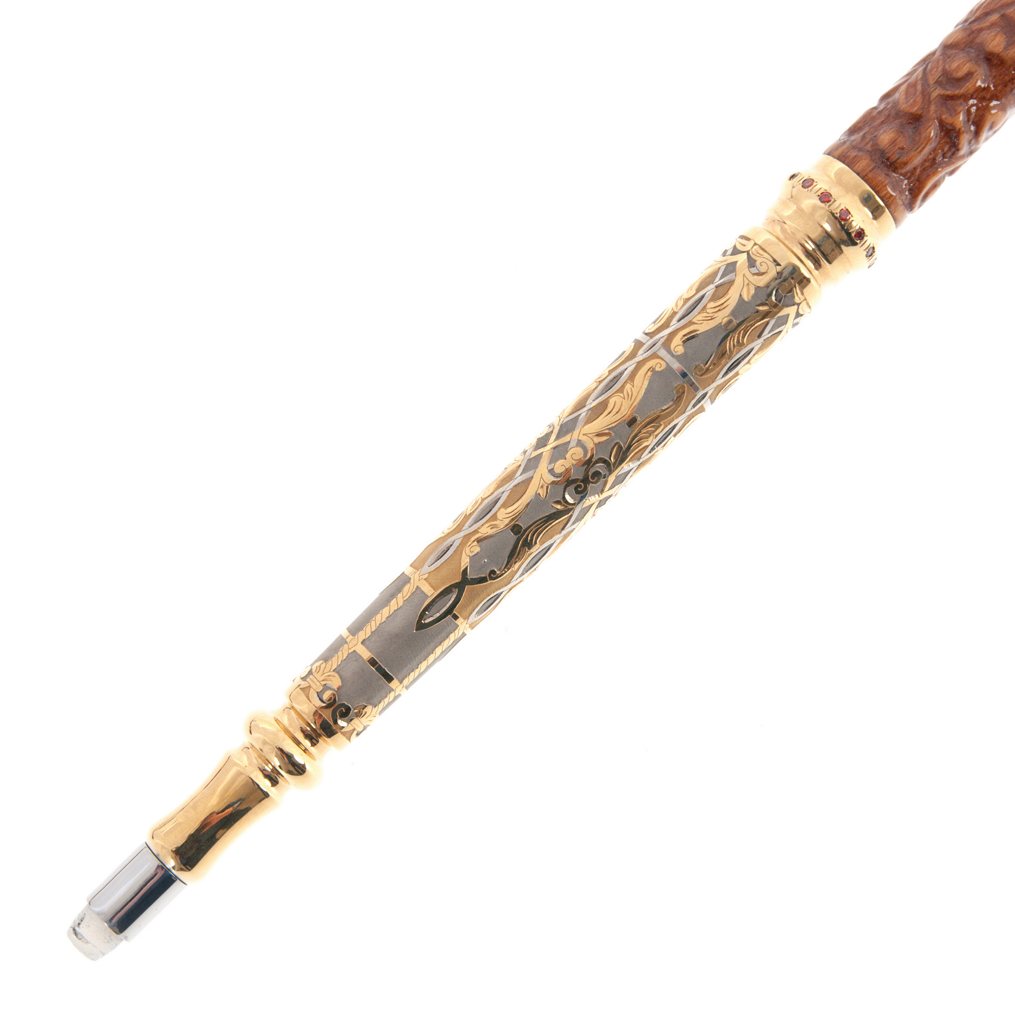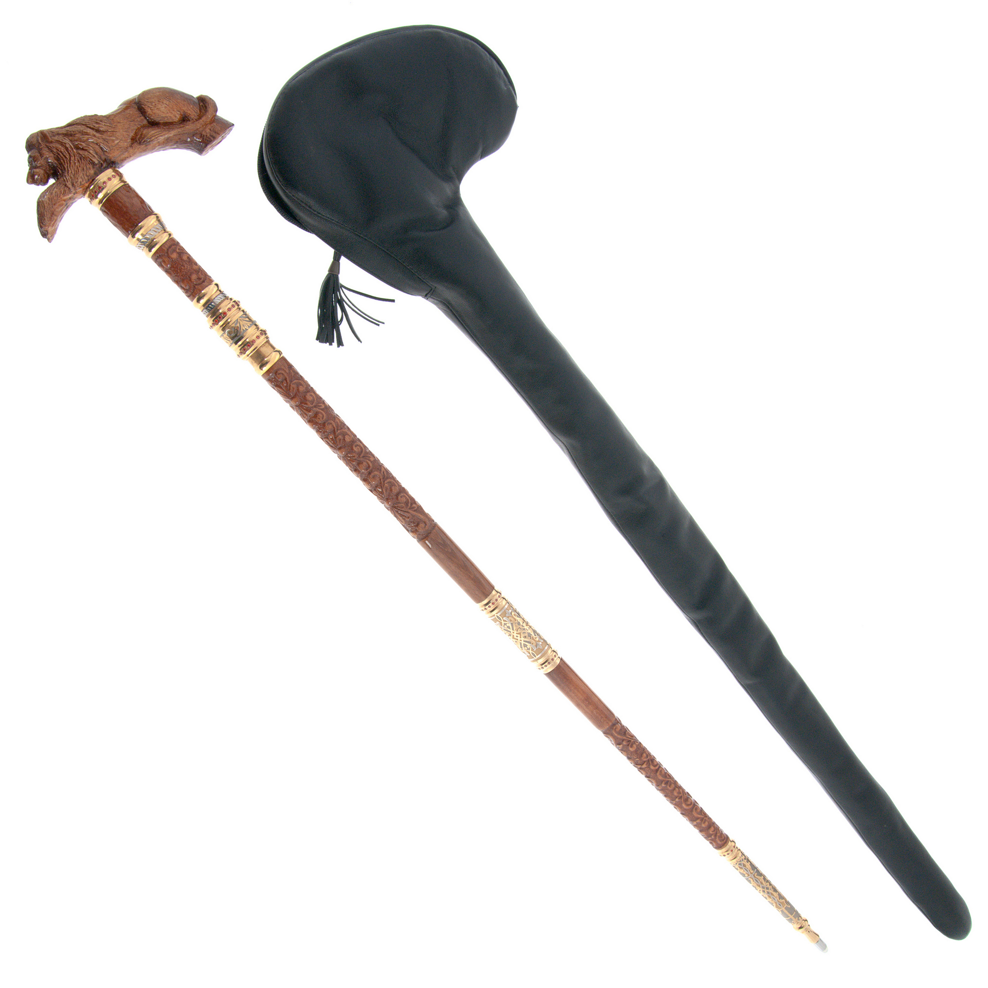 Thanks to painstaking rendering, needle engraving on metal, gilded details make the cane a real work of art. Cubic zirconia is used for decoration. The cane comes in a soft, comfortable genuine leather case for carrying and storage. If desired, a gift inscription can be engraved on the product.