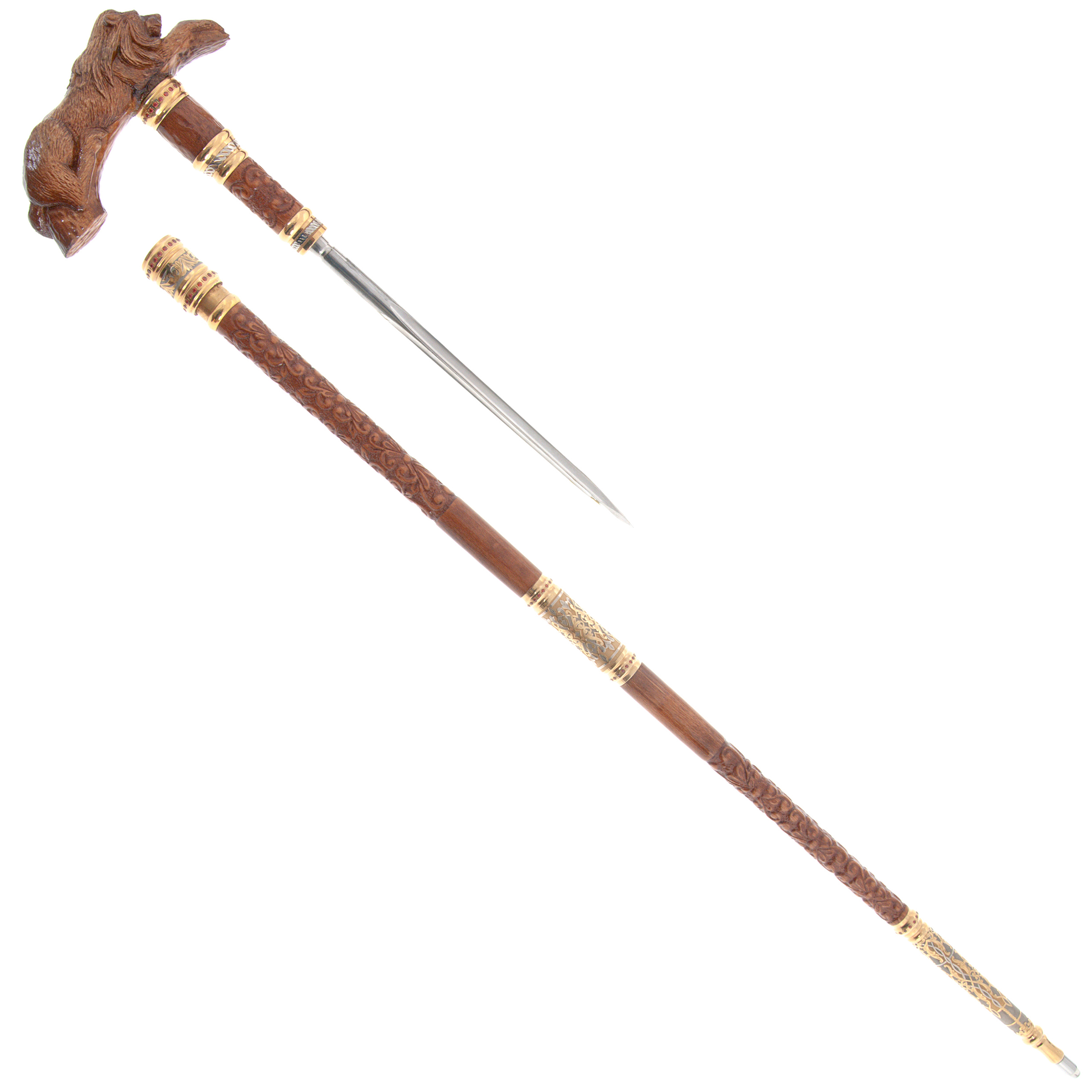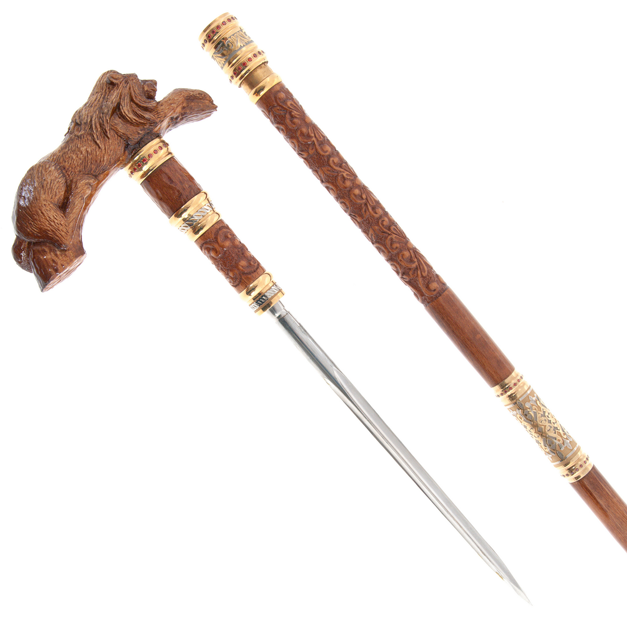 Walking stick with stiletto "Lion" mahogany, Zlatoust
