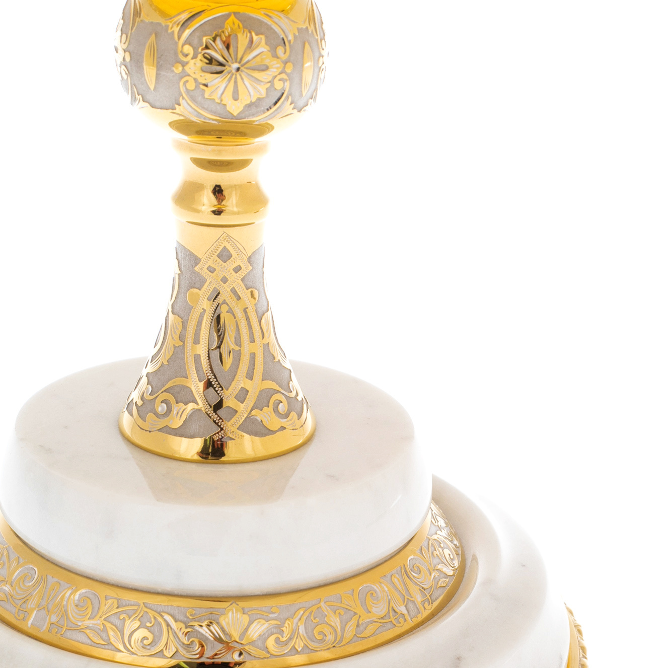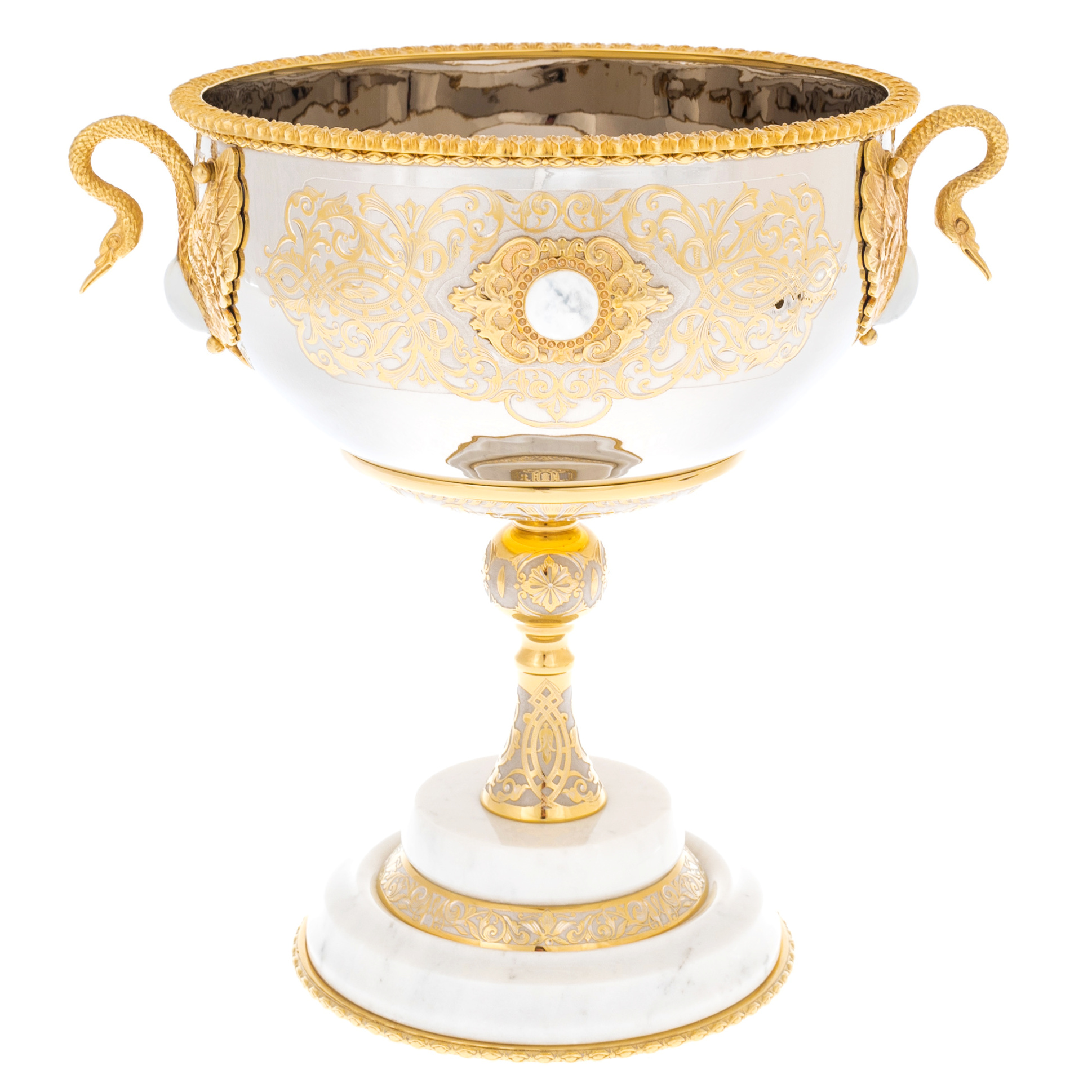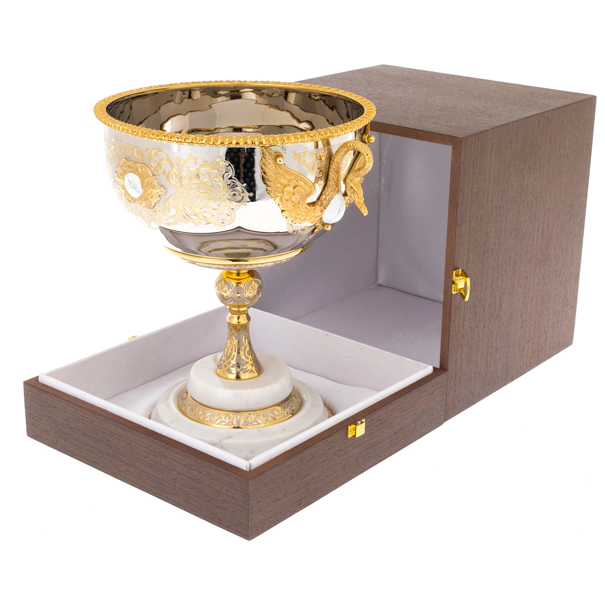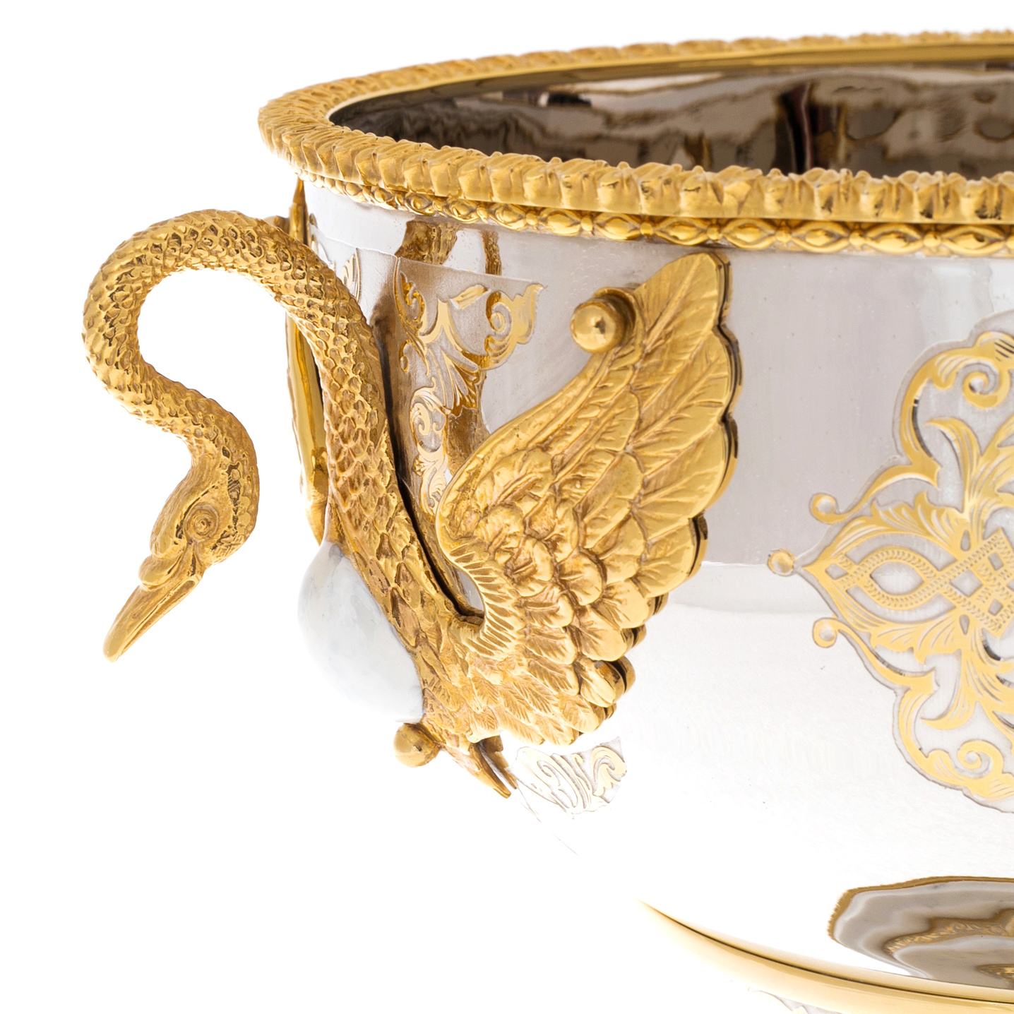 Vase for sweets "Swans" on a marble stand, Zlatoust