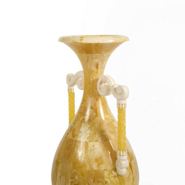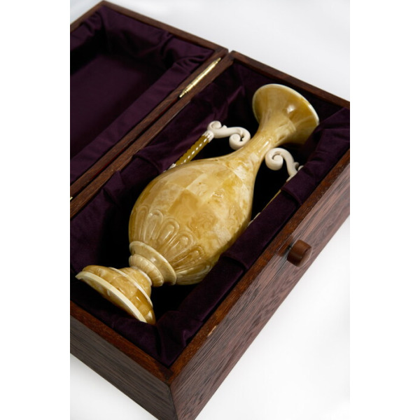 The vase, created entirely from selected Baltic amber, is a vivid testimony to the unique skill of our amber carvers. In the subtle, elegant work of the master, all the facets of the Baltic sunstone of several shades are revealed.
