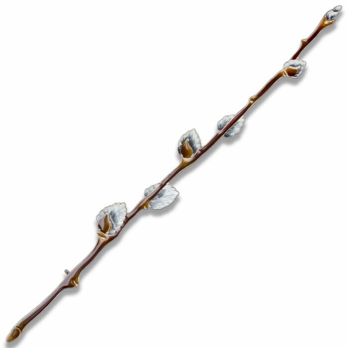 Русские самоцветыБрошь серебряная "Верба" коллекции "Гербарий Татьяны Поляковой"Брошь серебряная "Верба" коллекции "Гербарий Татьяны Поляковой"C тех далеких лет, энергично путешествуя и живя в разных уголках мира, раскручивая глобус в надежде найти, подобно Набокову — свои ромашки и Рахманинову — свою сирень, я искала ювелиров, которые могли бы в драгоценном металле воплотить мои мечты и открытия детства в жизнь. И вот осенью 2019 года на этикет-бранче в любимой петербургской «Астории», который я устраивала для клиентов, элегантная дама, мать двух братьев, завсегдатаев моего курса, подарила мне серебряную ложку «Русских самоцветов» с цветками сирени. Мои глаза вспыхнули!