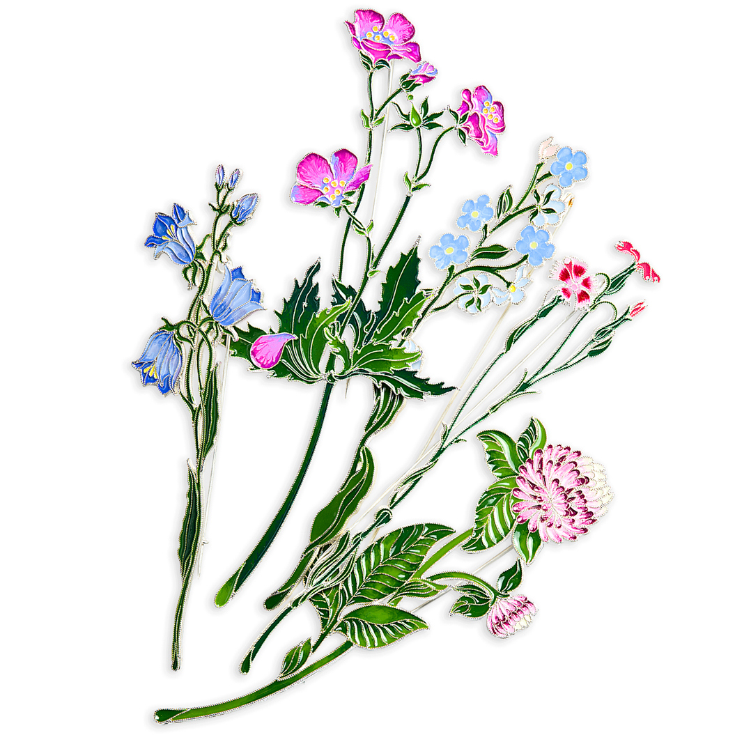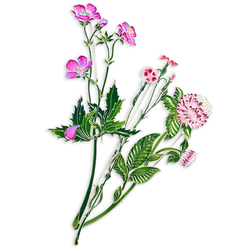 Silver brooch "Carnation field" collection "Herbarium of Tatiana Polyakova"