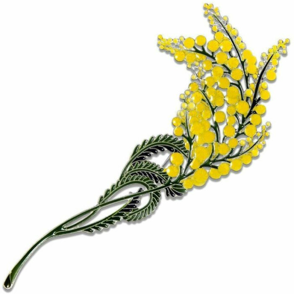 "For a long time we painted and decorated our mimosa from the acacia family, a flower recognized by the French as the queen of all growing flowers, a symbol of celebration, tenderness, emotion and sensuality. The first fluffy flowers in the December rays of the southern sun, mimosa festivals on the Riviera, Capri and Monaco, a bouquet of mimosa in Paris and in childhood in Leningrad. I remember my first acquaintance forever. I do not believe in the legend that mimosa is able to reveal the cunning of a lady by lowering and squeezing the leaves. On the contrary, mimosa is about the sun and happiness. The brooch branch turned out to be voluminous. And very self-sufficient. I often hang it on scarves and even on curtains. I connect it with yellow and white daffodils."