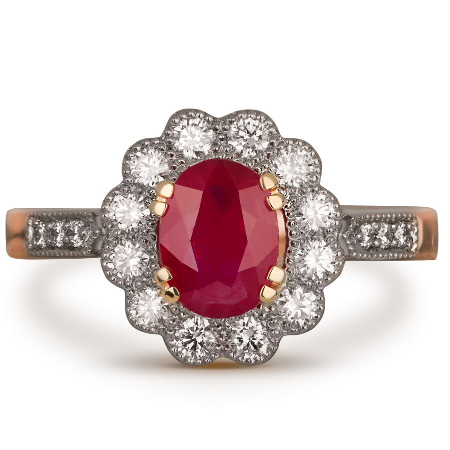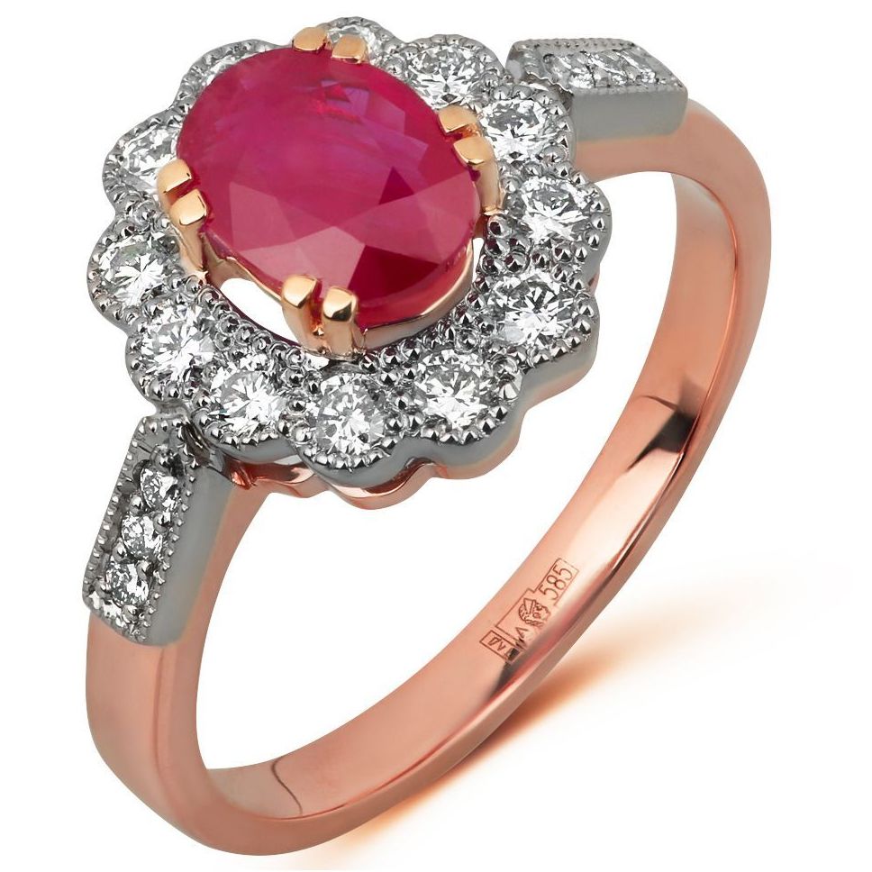 Red gold ring with diamonds and ruby