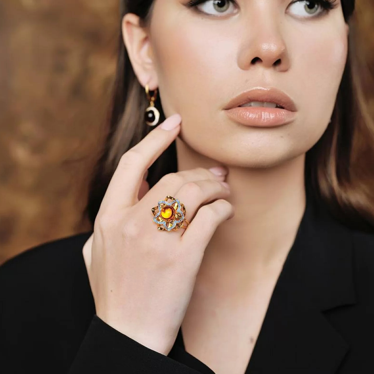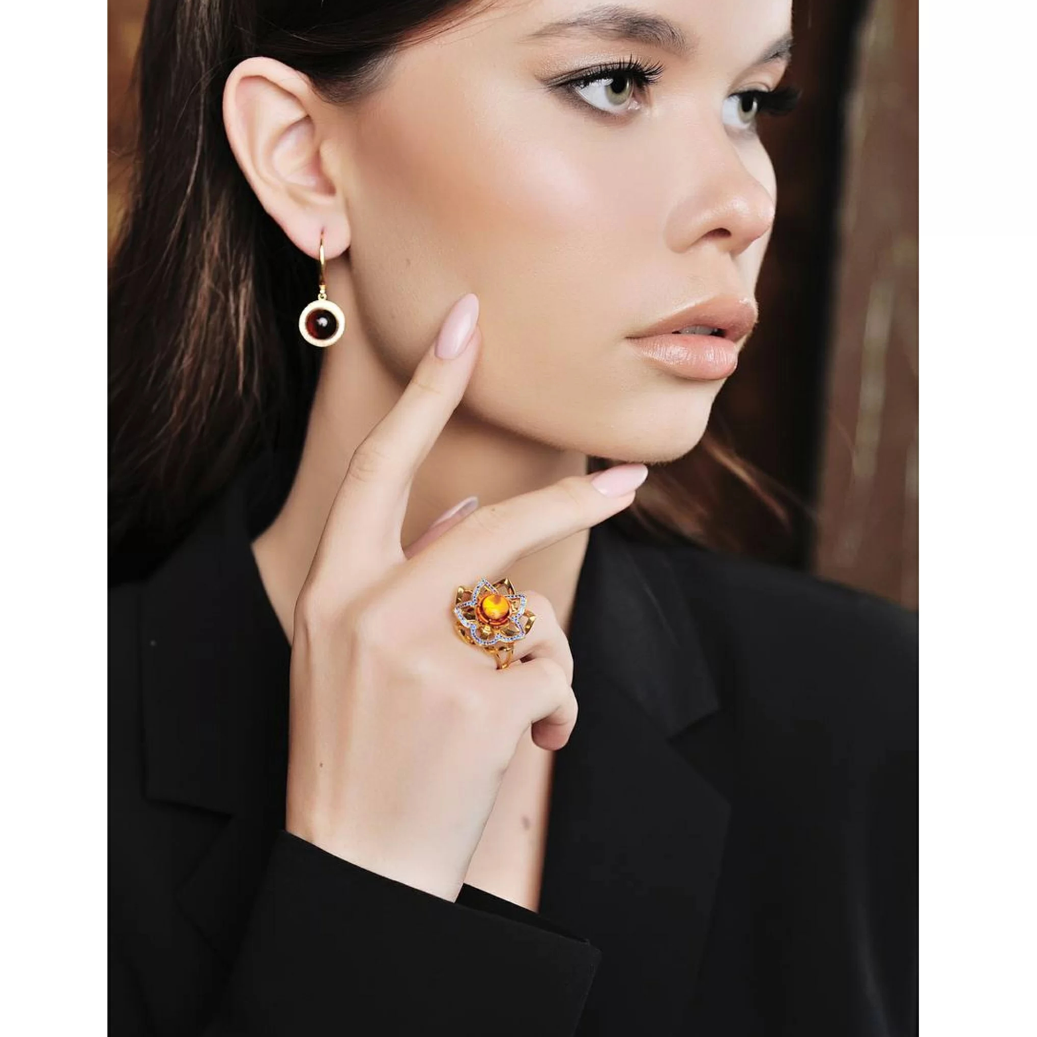 OPERA Premium silver ring with cognac amber
