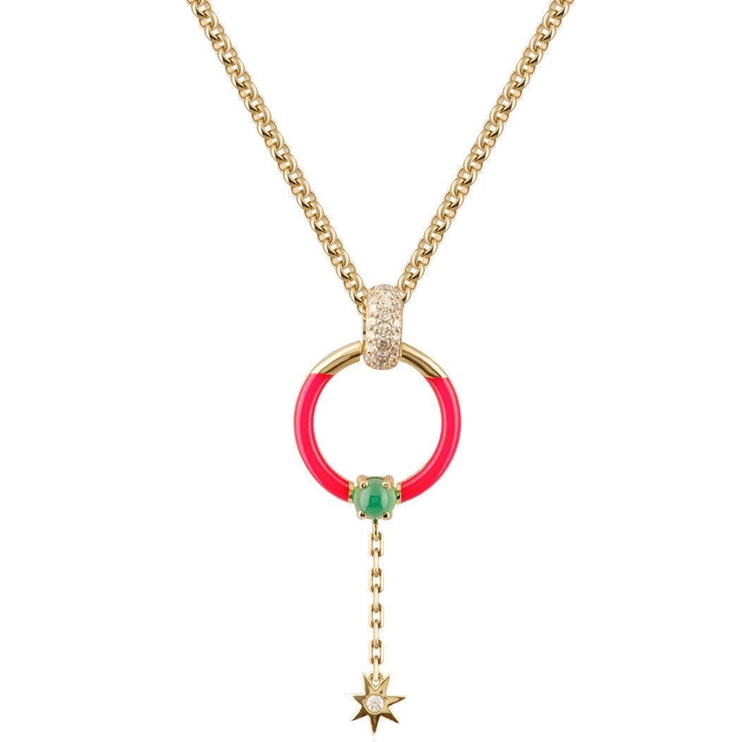 Yellow gold necklace with chrysoprase and diamonds