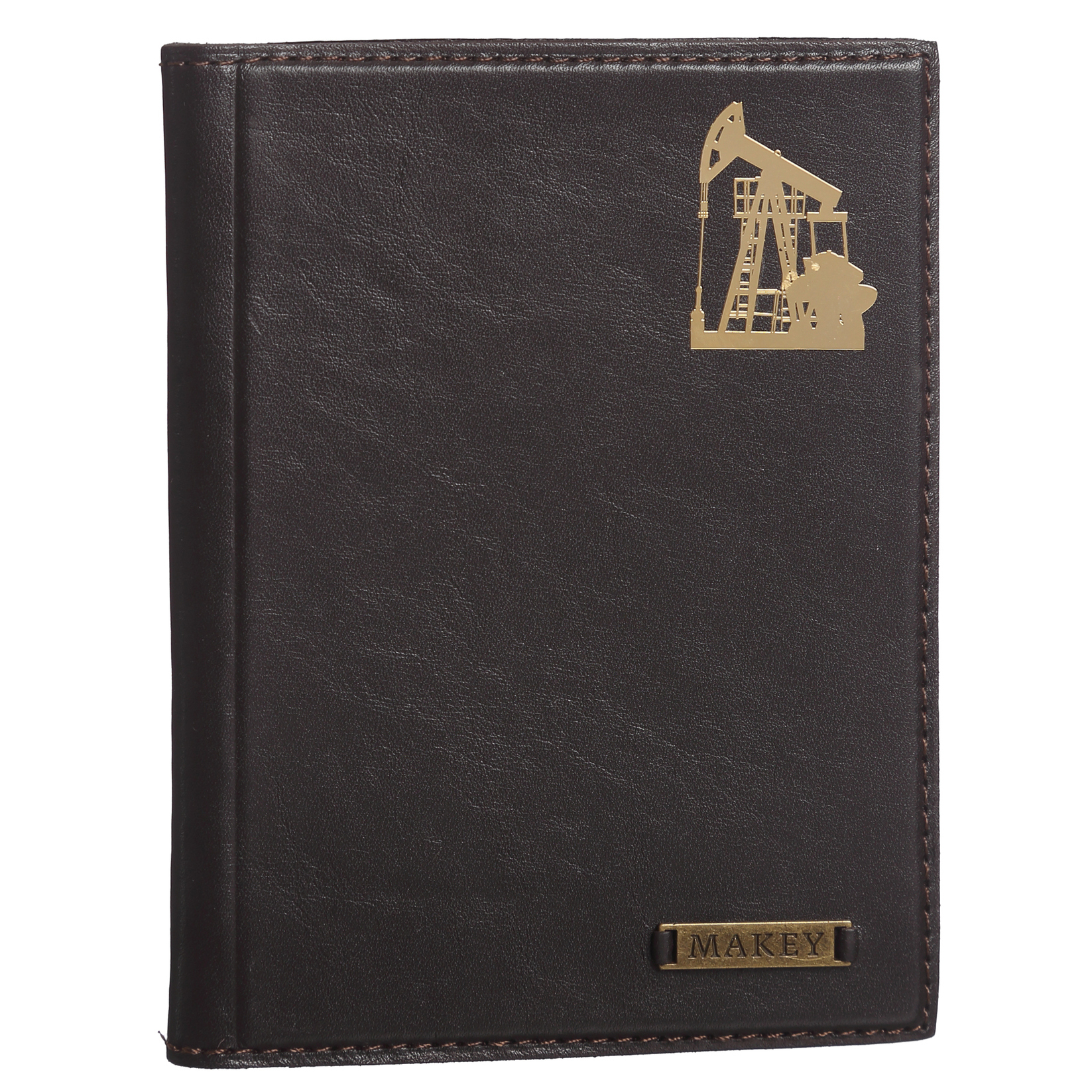 Обложка для автодокументов в кожаном переплете "Нефтяная вышка" коричневая