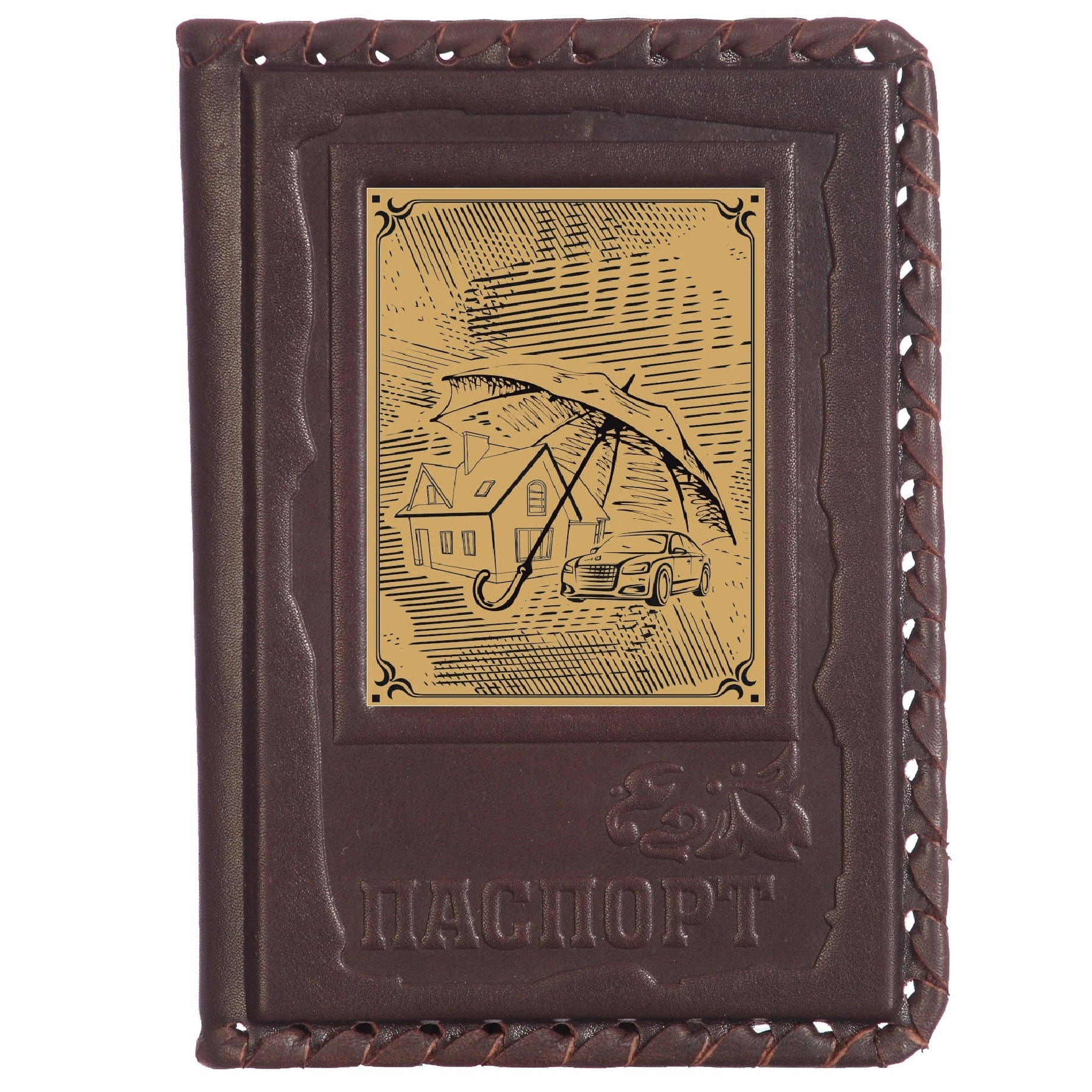 Обложка для паспорта в кожаном переплете "Страховщику-1" с сублимированной накладкой