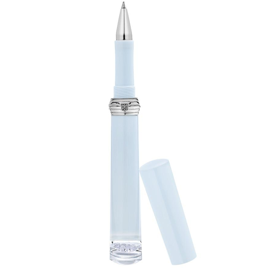 Ручка-роллер акриловая "Элегант" с серебром и фианитами, голубая