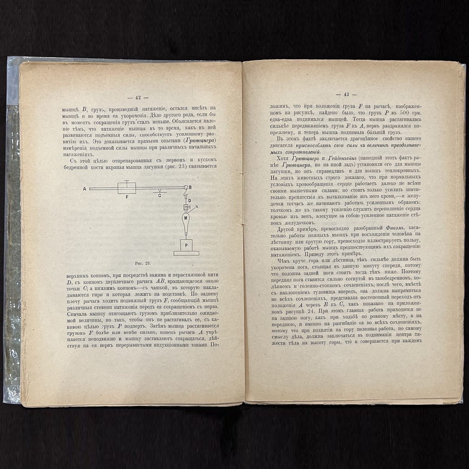 В этой книге, изданной в 1901 году, были подробно рассмотрены следующие вопросы: работа опорно-двигательного аппарата (ОДА) как рабочей машины (формы суставов, плечи сил тяги мышц); механика мышечного сокращения (факторы, определяющие силу мышцы); биомеханические свойства мышцы (в частности, упругие свойства мышцы); функции верхней и нижней конечностей человека как рабочей машины. Кроме этого, детальному биомеханическому анализу были подвергнуты некоторые физические упражнения: сгибание рук в висе, присед и вставание на одной ноге "пистолет".