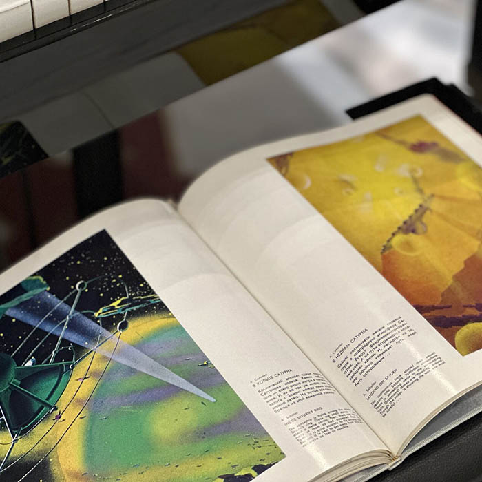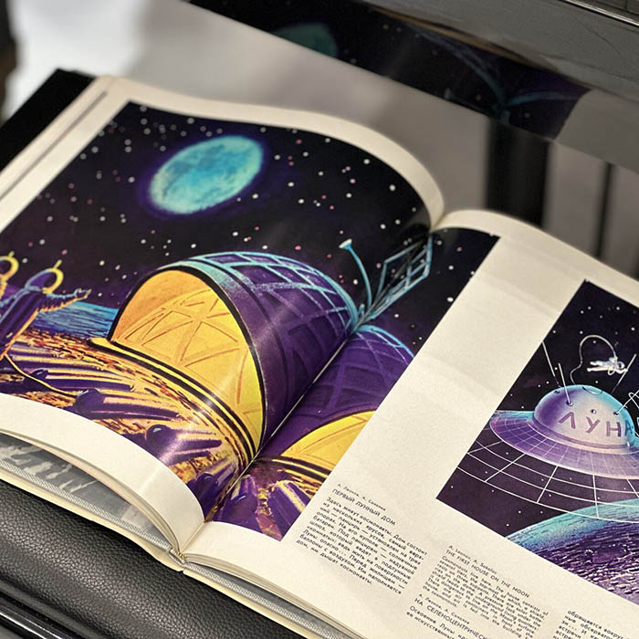 В настоящем альбоме представлены посвященные космосу картины двух художников. Один из них, Андрей Соколов, - первый советский художник-фантаст, посвятивший себя научно-художественному изображению космоса. Второй, Алексей Леонов, - дважды Герой Советского Союза, первый космонавт, вышедший в открытый космос за пределы корабля. Ряд картин создан А.Леоновым и А.Соколовым совместно. Альбом стал дебютом творческого тандема в книжной графике. Картины А.Соколова и А.Леонова были апофеозом футурологического оптимизма и веры в торжество науки. Они рассказывали о скором освоении человеком Солнечной системы, колонизации новых планет, преодолении пространства и времени и достижении соседних звезд.