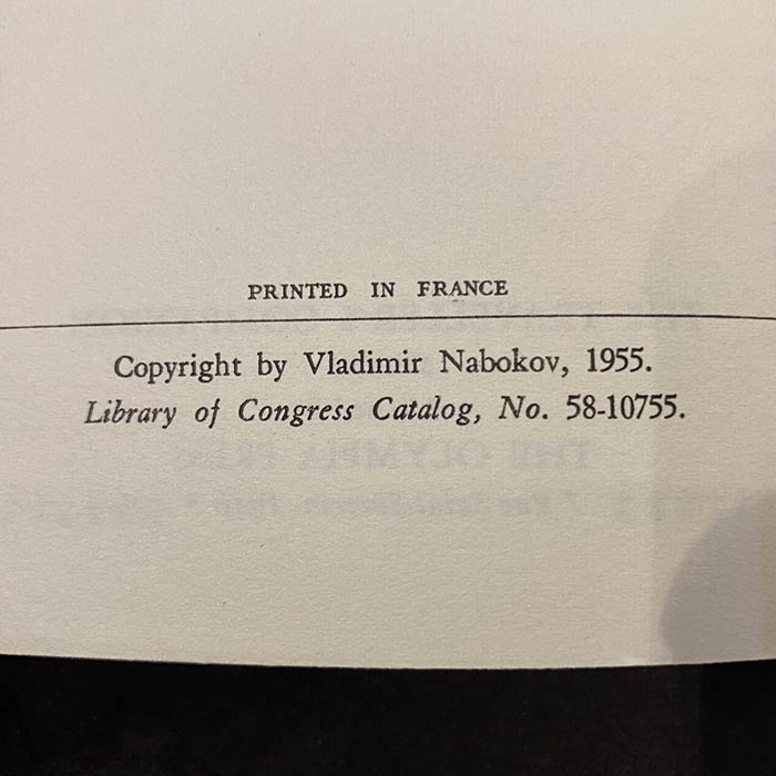 Наш экземпляр отпечатан в 1959 году, сразу после официального разрешения издателю реализовывать книгу Набокова, и считается третьей печатью первого издания.