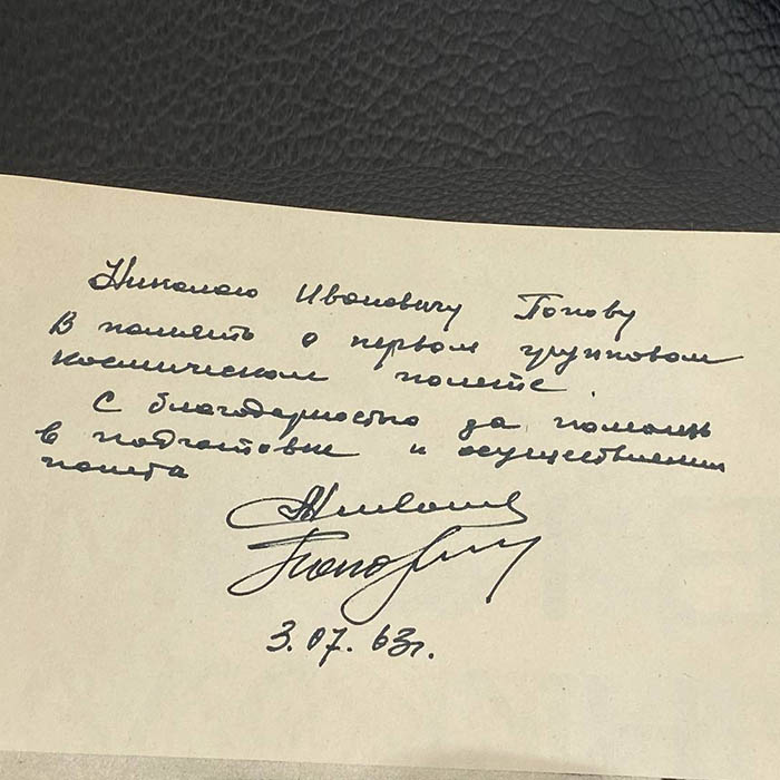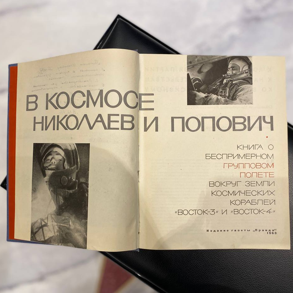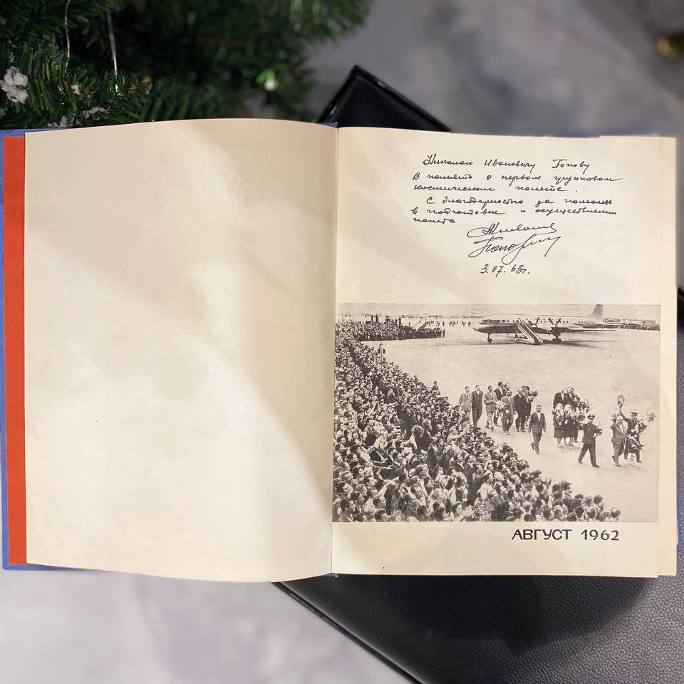 Книга с дарственной надписью и автографами космонавтов Андрияна Николаева и Павла Поповича