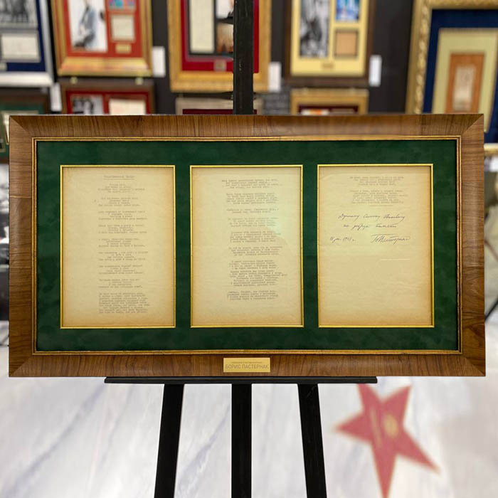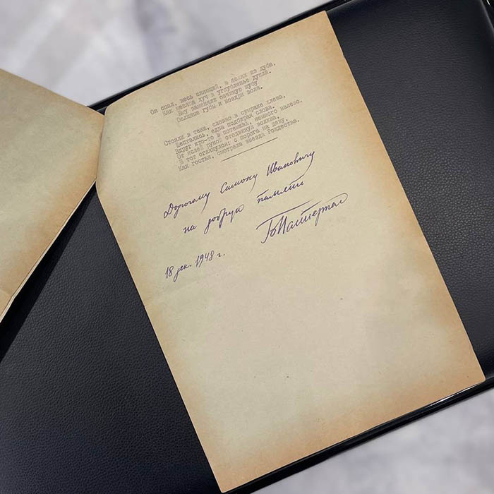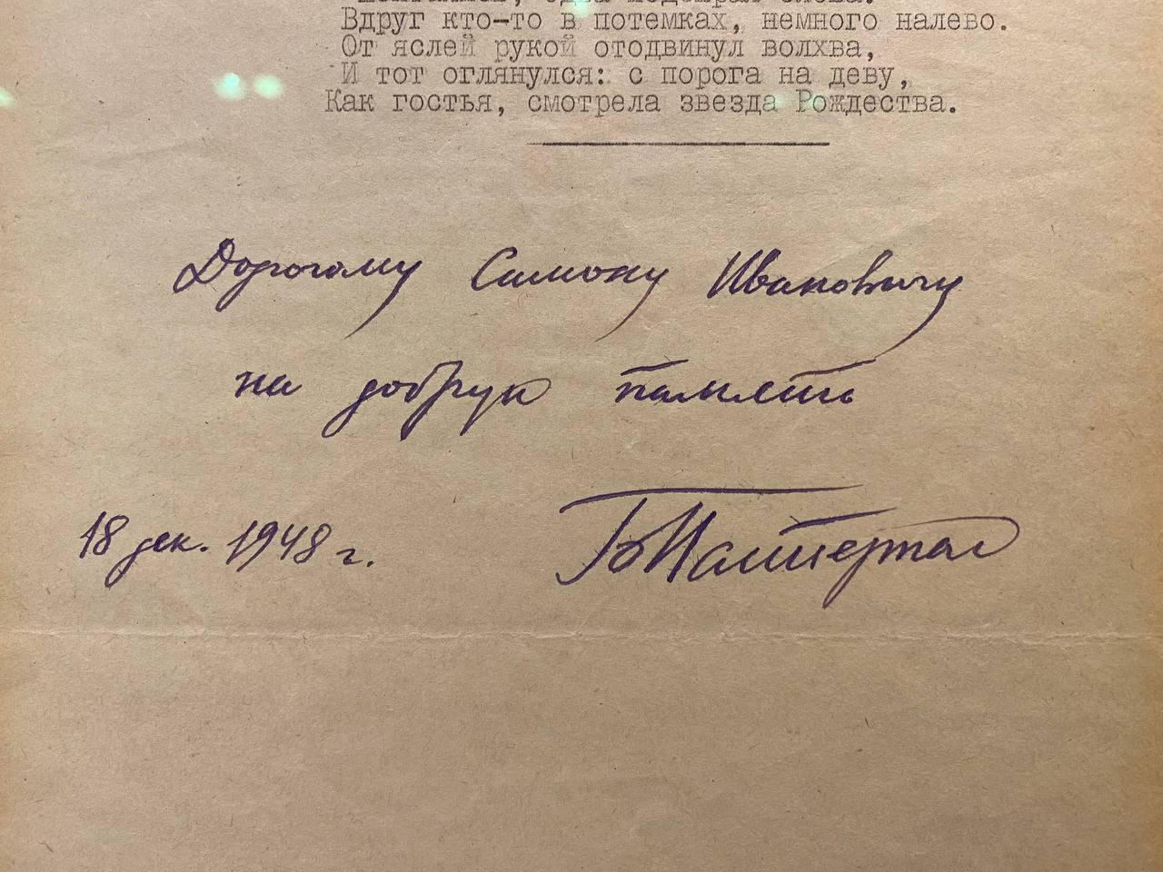 Машинопись с рукописным обращением и автографом поэта Бориса Пастернака
