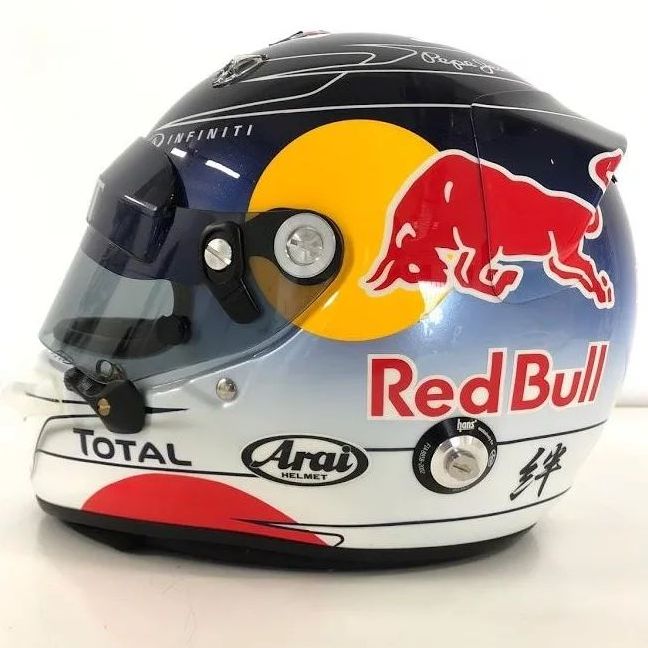 Визор, на котором оставлена подпись Себастьяна Феттеля, стал молчаливым свидетелем всех эмоций, бушевавших в тот день на трассе. Скрещивание взглядов с соперниками, напряжение перед стартом, радость от удачных атак, холодный расчёт при обороне позиций — всё это запечатлено в прозрачной глади, отражавшей небо Судзуки и алую ливрею Red Bull Racing.