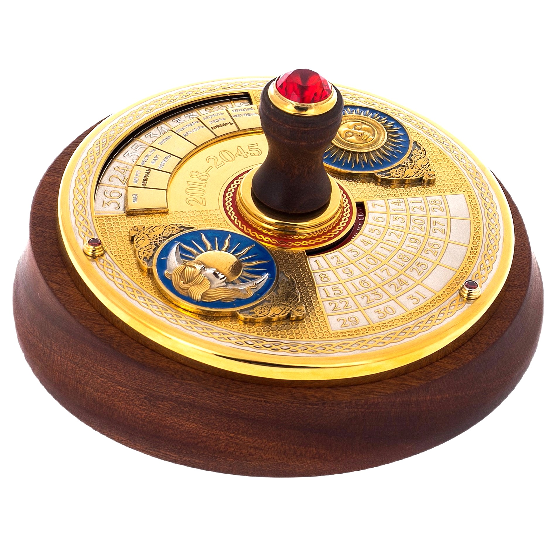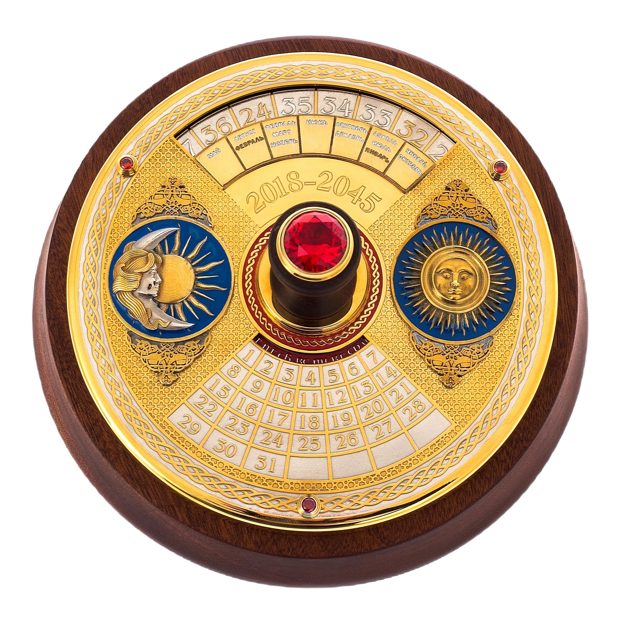 Вечный календарь на деревянном основании "День и Ночь" в подарочной упаковке