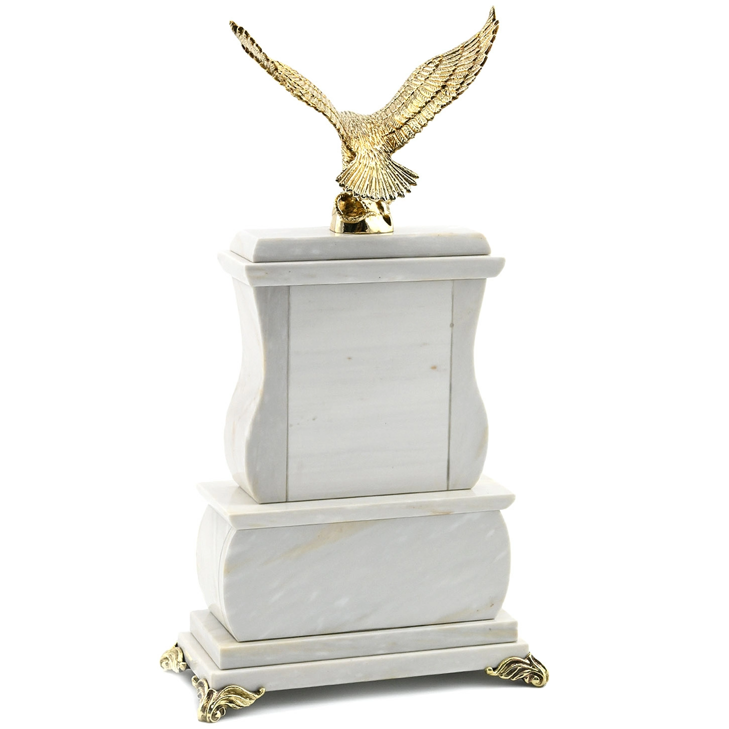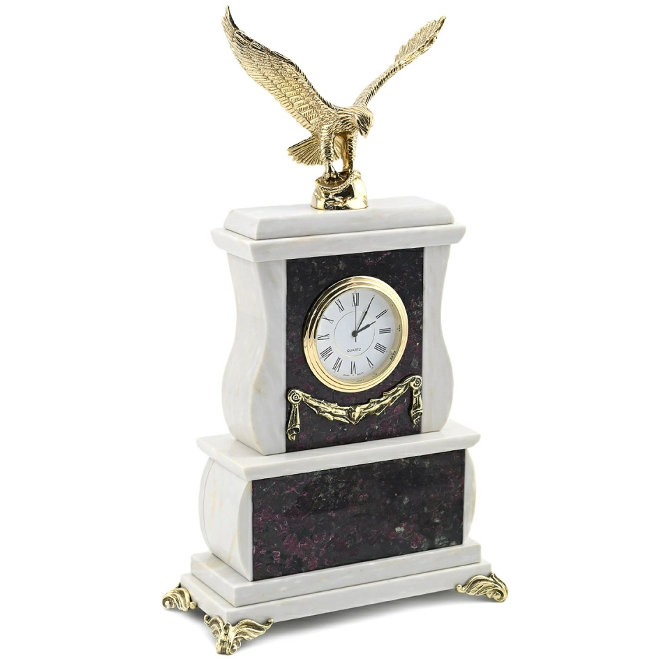 Часы каминные из эвдиалита и мрамора "Орёл"