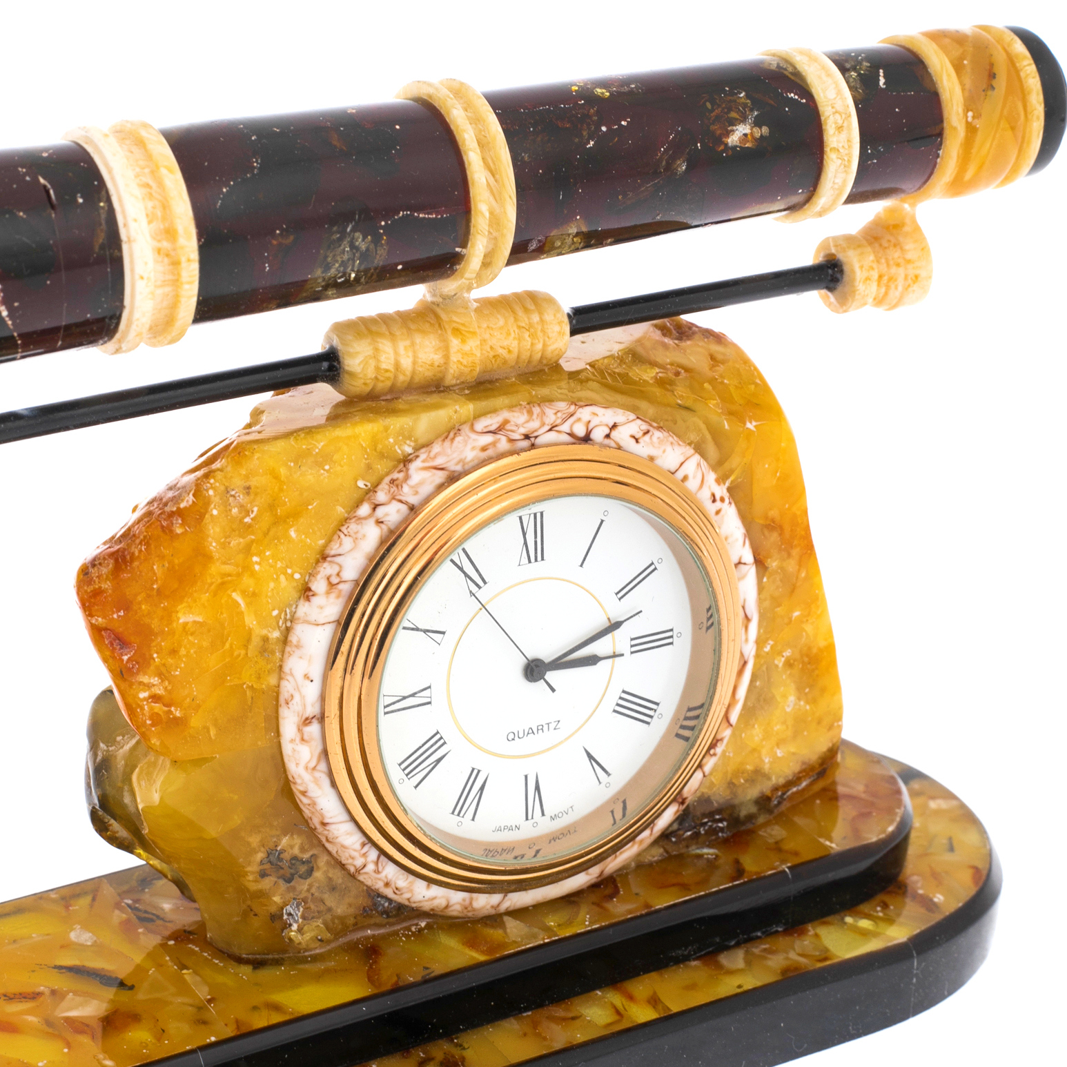 Эти настольный часы — не просто прибор для отсчета времени, но настоящая сокровищница, в которой слились искусство, история и роскошь. Каждая деталь этого уникального творения, выполненная из редчайшего янтаря, словно носит на себе отпечаток вековых традиций и мастерства. Янтарь, с его теплыми золотыми оттенками — не просто материал, а целая эпоха, замершая в своем времени. Сложенные вручную элементы и безупречная отделка делают этот предмет настоящим произведением искусства, которое подчеркивает величие и изысканность интерьера.