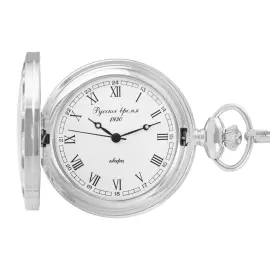 Карманные кварцевые часы Русское время бело-серебристые Карманные кварцевые часы Русское время бело-серебристые Карманные часы - для тех, кто умеет ценить собственное время, но и способен всегда найти минуту для раздумий наедине с самим собой. Это вечная классика, объединение старины и изменений, присущих каждой эпохе. Часы в классическом стиле - это технологичный прибор, и престижный аксессуар. С ними вы абсолютно точно будете выглядеть современно и модно. Отлично завершая Ваш образ, такие часы подчеркнут ваш стиль. Кварцевый часовой механизм поможет Вам и хорошо решить все задачи и всегда знать самое точное время. Новое слово в часовом деле. Материал корпуса – латунь, традиционный сплав для российских часов, позволяет создавать прочные и надежные модели, не удорожая их. Данное решение, 100% проверенное на нашей практике. Блестящее покрытие хром ассоциируется со стильной роскошью – не кричащей, но уверенно заявляющей о себе. Это 100% правильный выбор для тех, кто любит в аксессуарах качество и строгую элегантность. Цепочка изготовлена качественно и надежно помогает расположить часы в кармане без возможности их потери. Прочный материал цепочки исключает ее случайный разрыв.