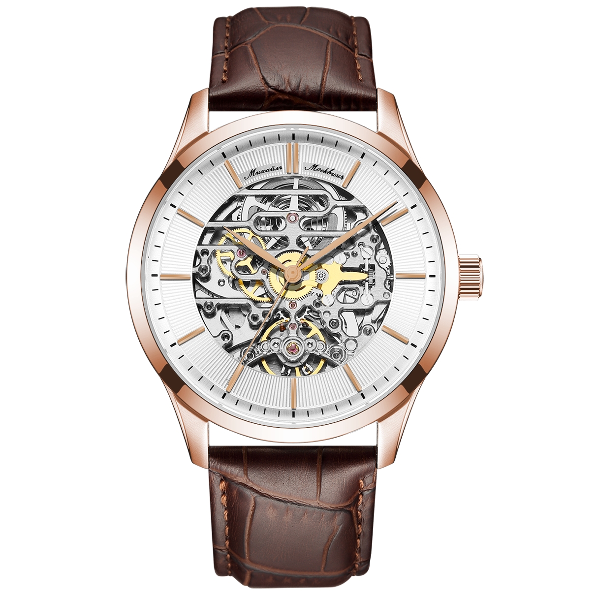 Наручные механические часы с автоподзаводом Mikhail Moskvin "Elegance" бело-золотистые с коричневым ремешком