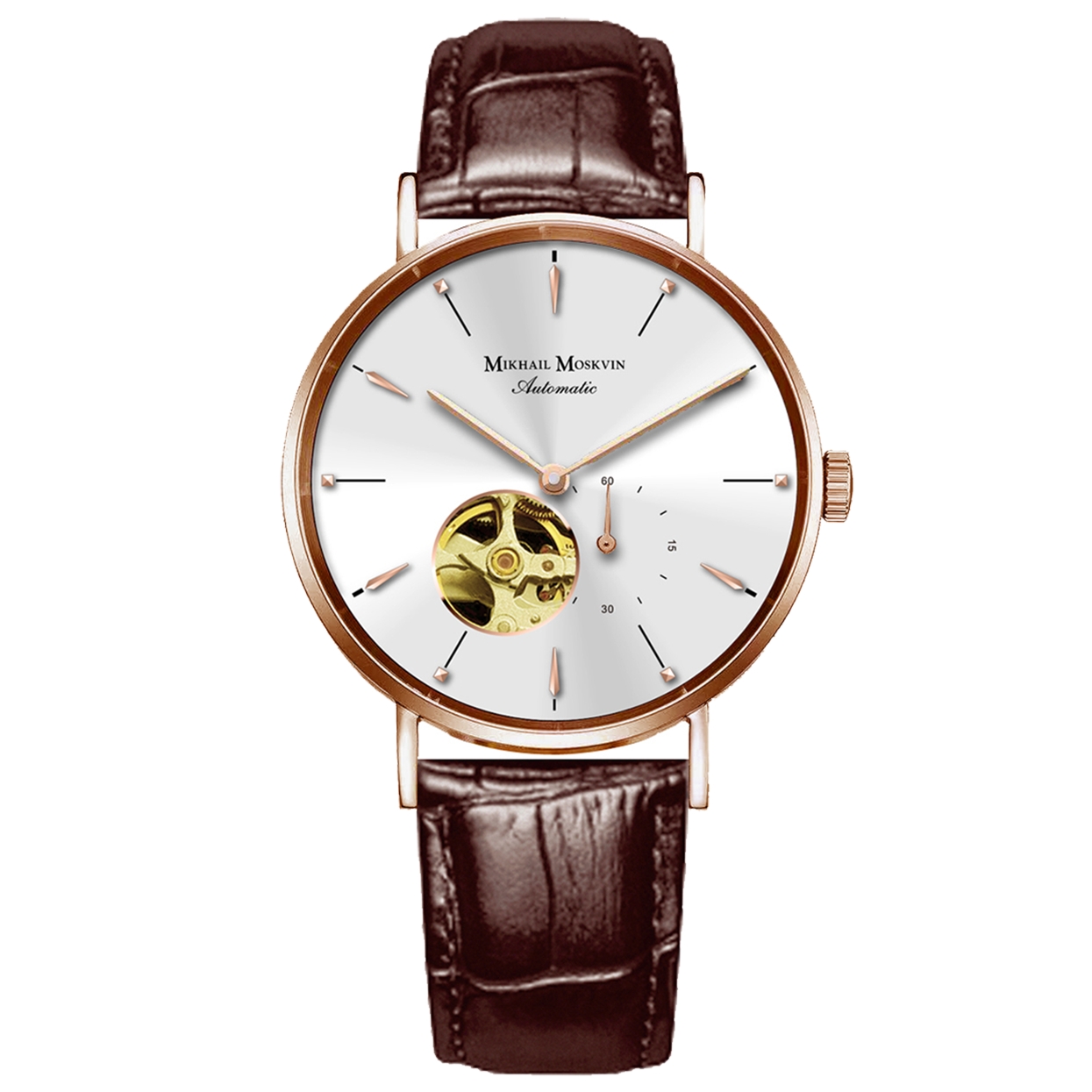Наручные механические часы с автоподзаводом Lincor "Elegance" с коричневым ремешком
