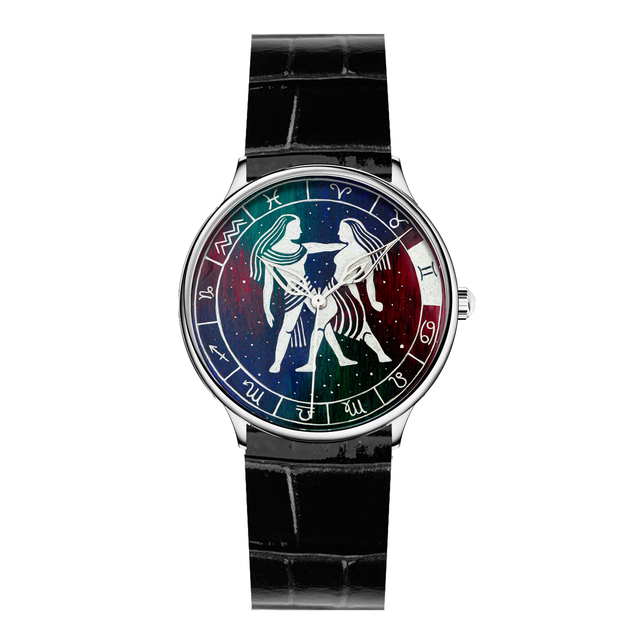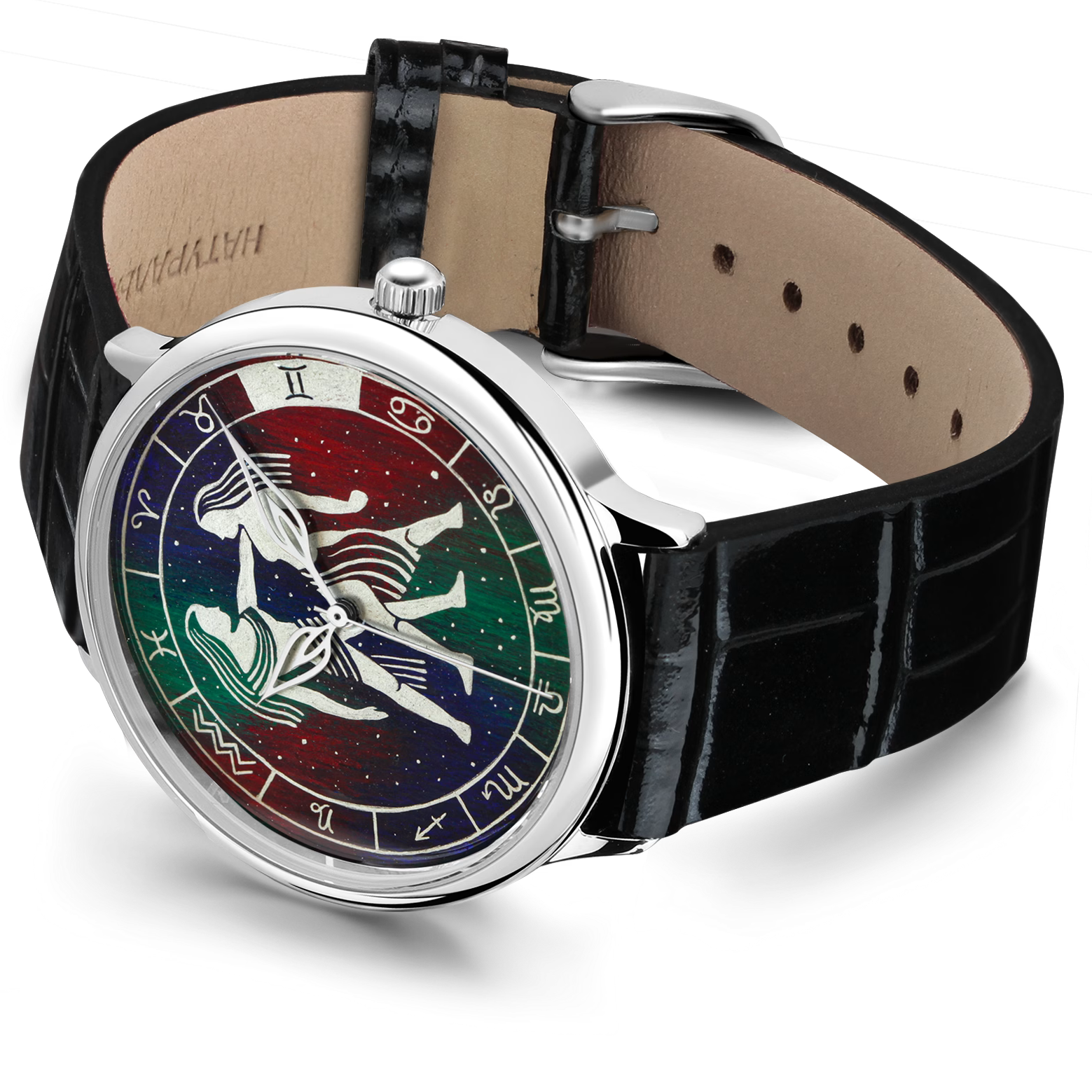 Наручные кварцевые часы Lincor "ART Знаки зодиака - Близнецы" серебристые с черным ремешком